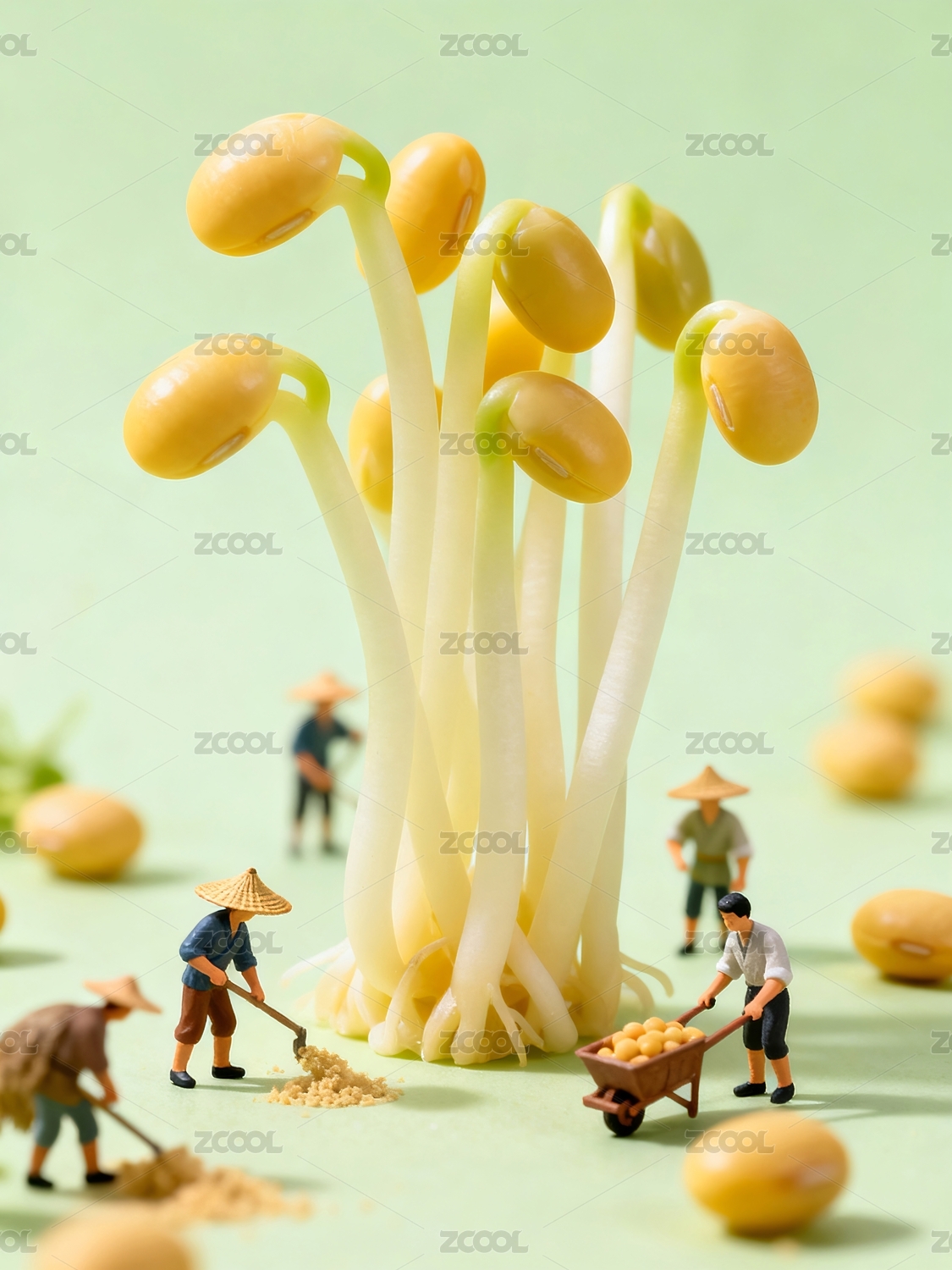 豆芽旁边工作人物
