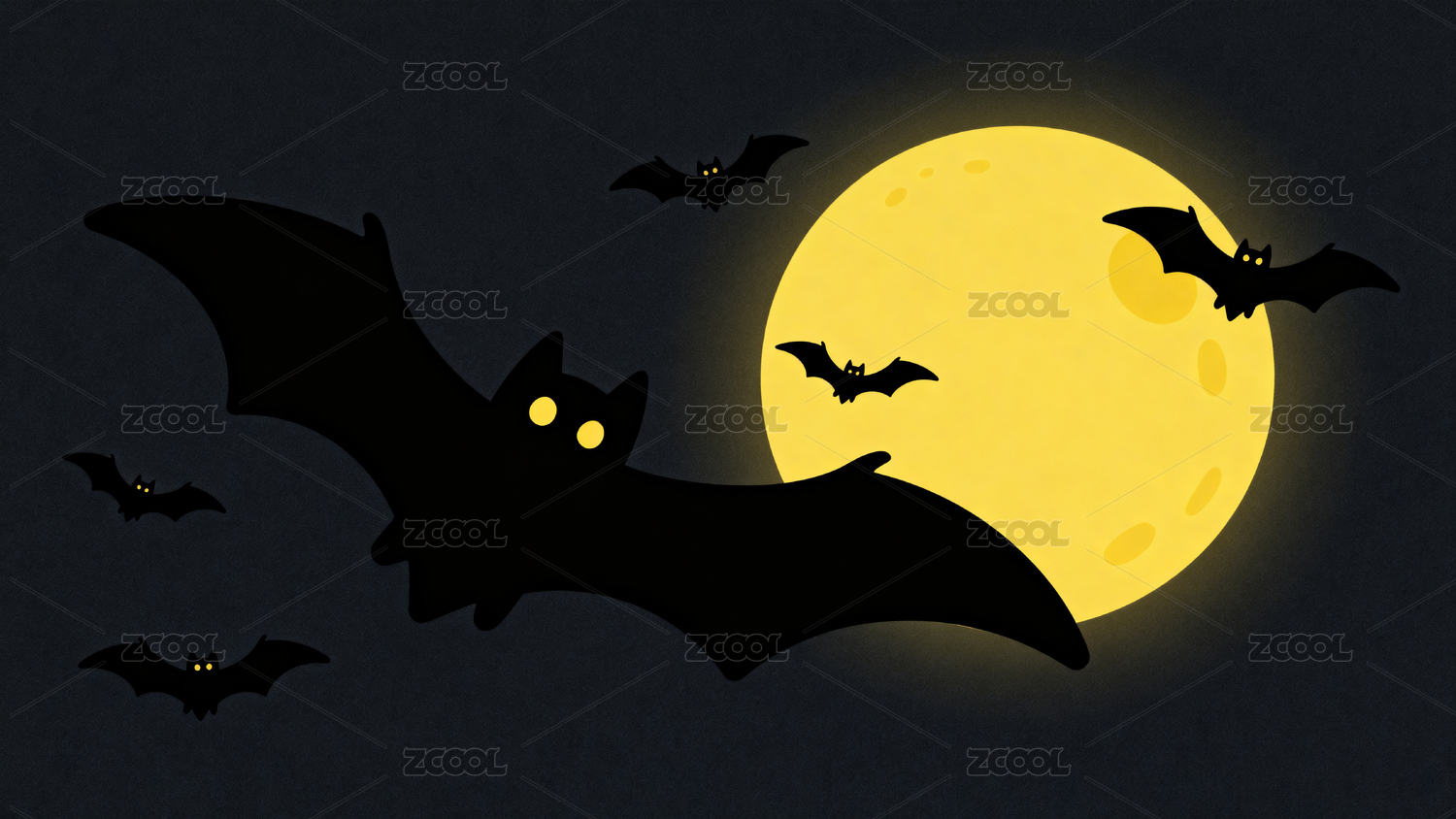 黄色,夜晚,月亮,蝙蝠,飞行,天空,满月,圆形,黑色,夜空