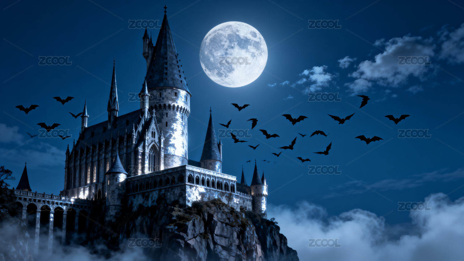 古堡月夜蝙蝠飞舞