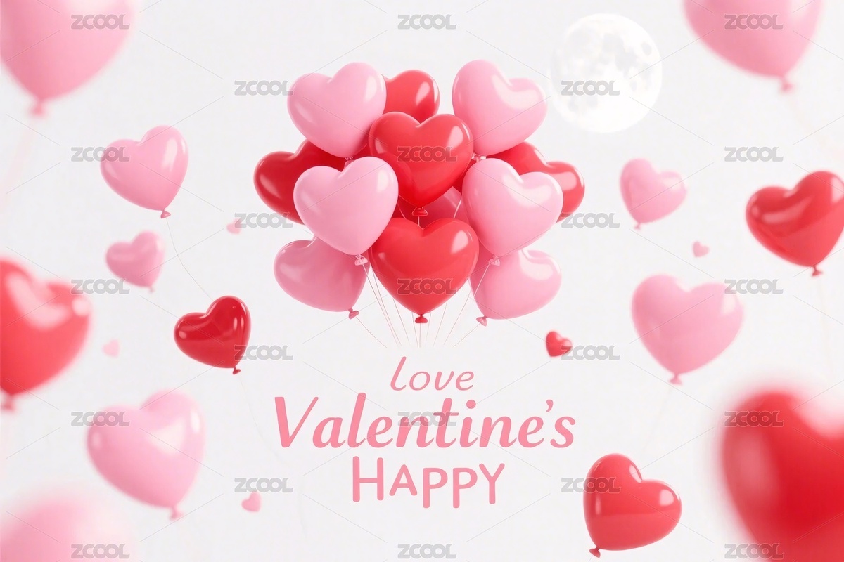 爱心气球,粉色,红色,情人节,爱情,幸福,月亮,插画,装饰,浪漫