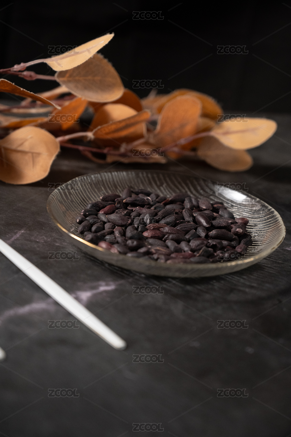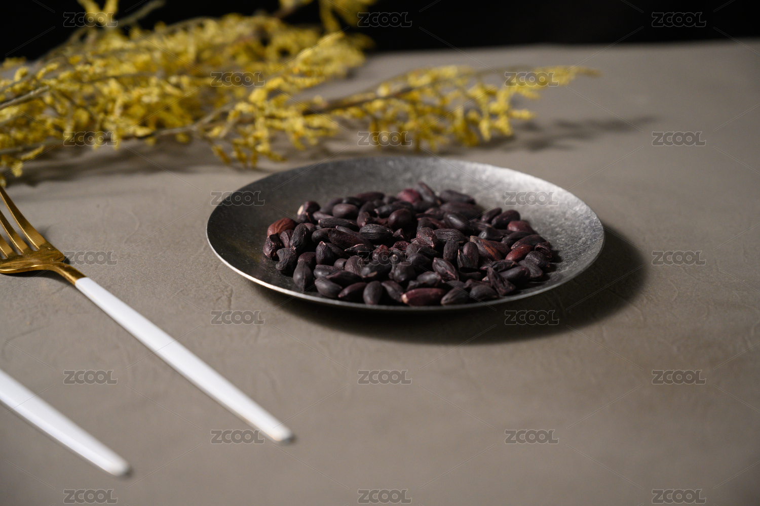桌面上的盘子里的美味可口的黑皱皮花生