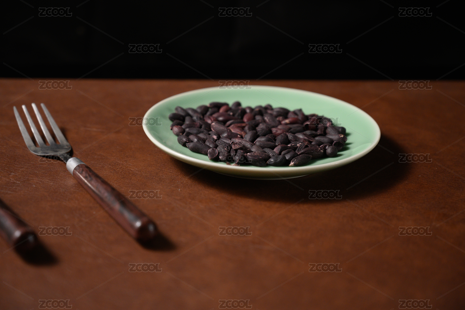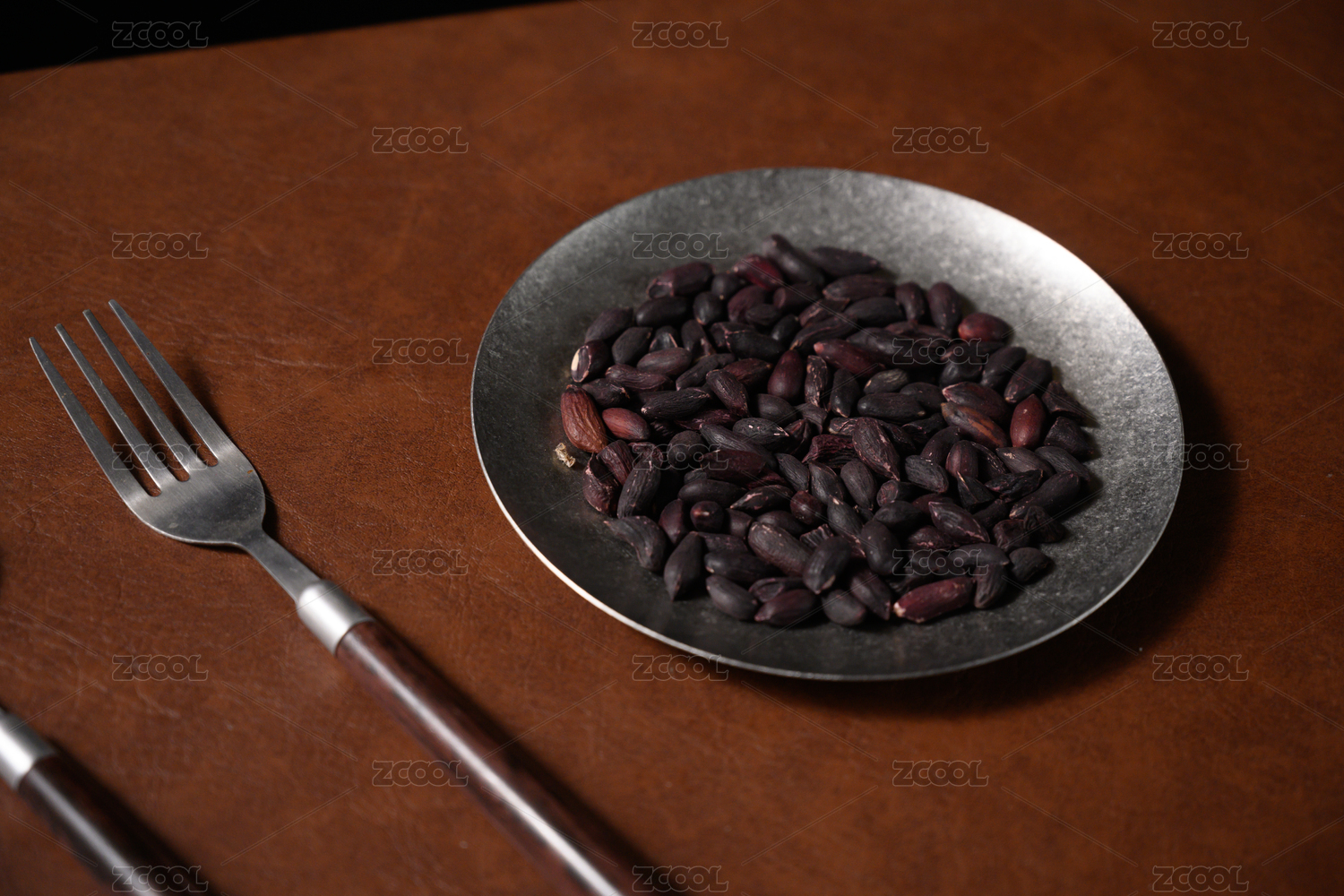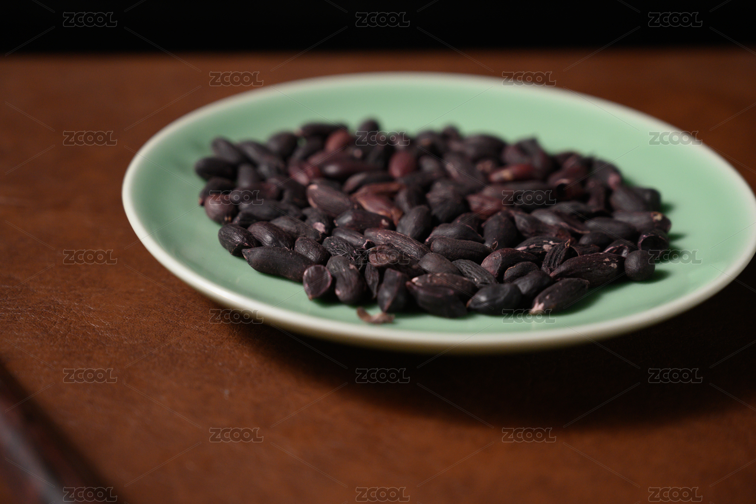 桌面上的盘子里的美味可口的黑皱皮花生