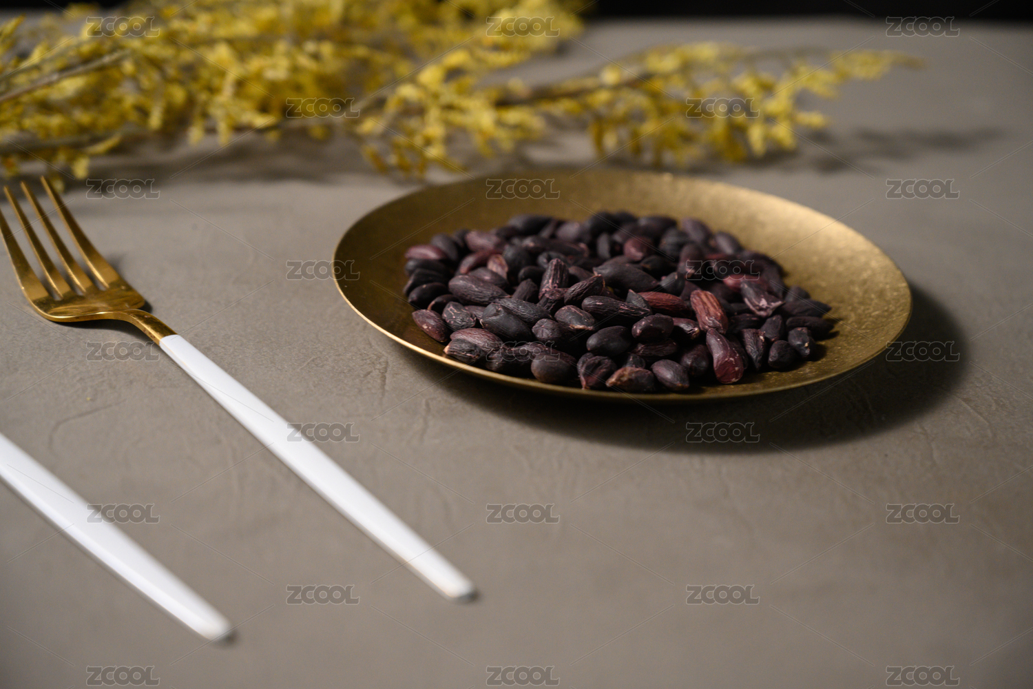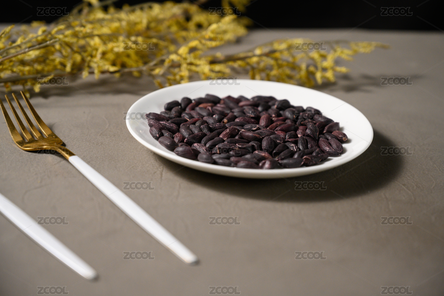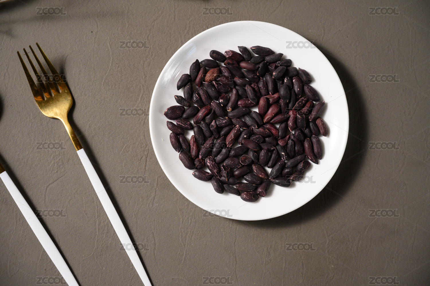 桌面上的盘子里的美味可口的黑皱皮花生