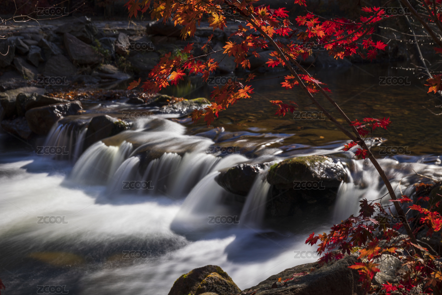 中国四川巴中南江县光雾山秋季的红叶溪流