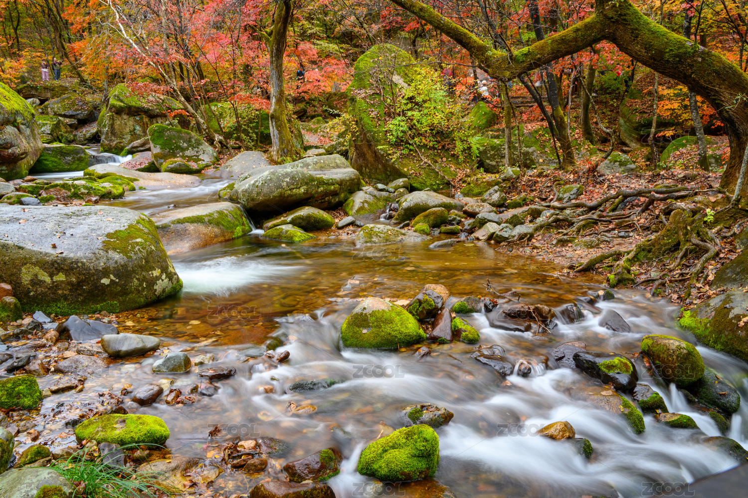 沈阳本溪老边沟,秋季枫树红叶溪流自然风光