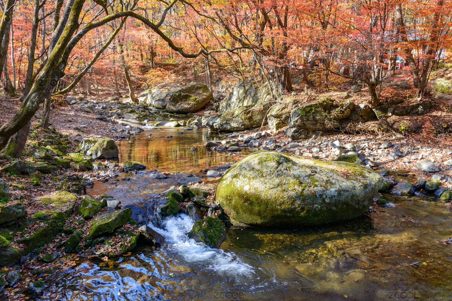 沈阳本溪老边沟,秋季枫树红叶溪流自然风光