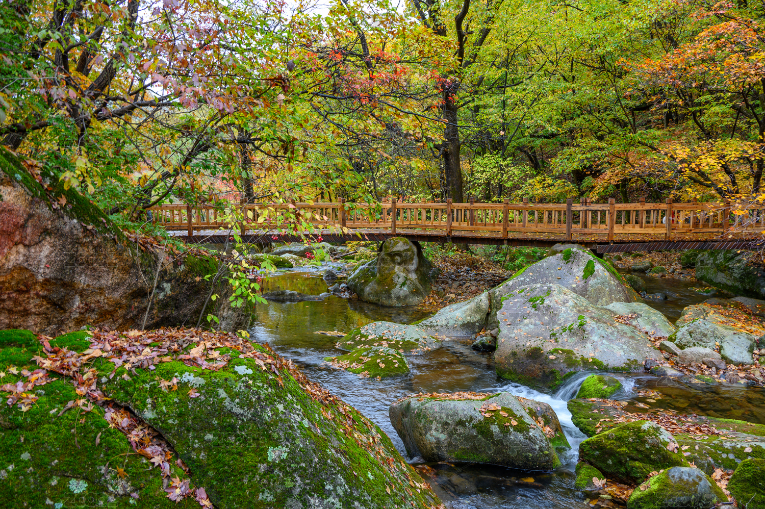 落叶,沈阳,本溪,老边沟,中国,亚洲,苔藓,风景,旅游,溪流