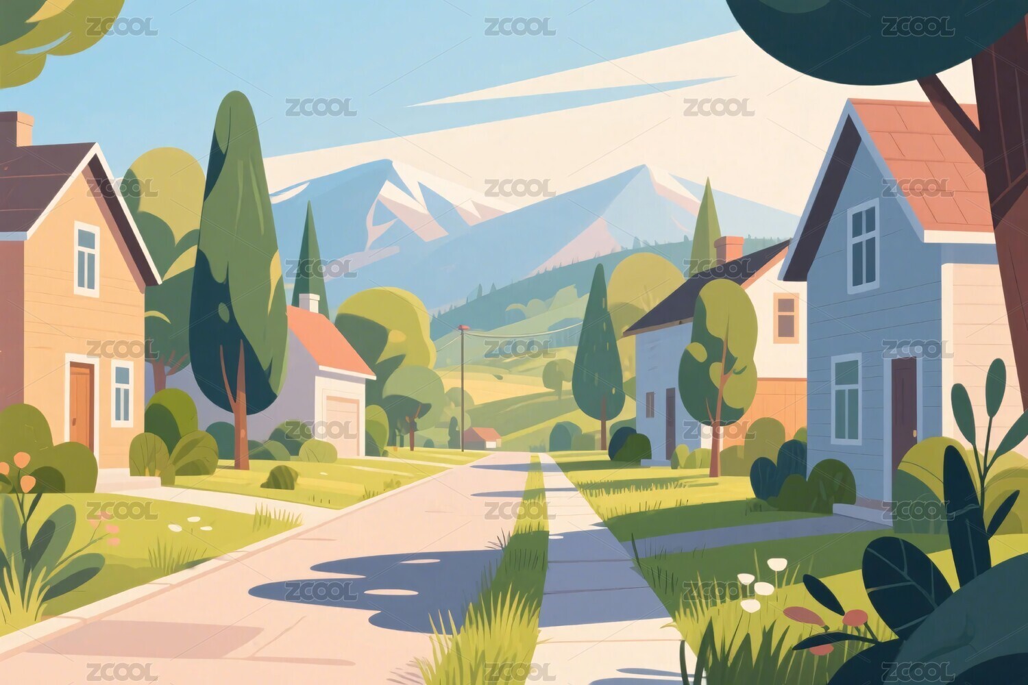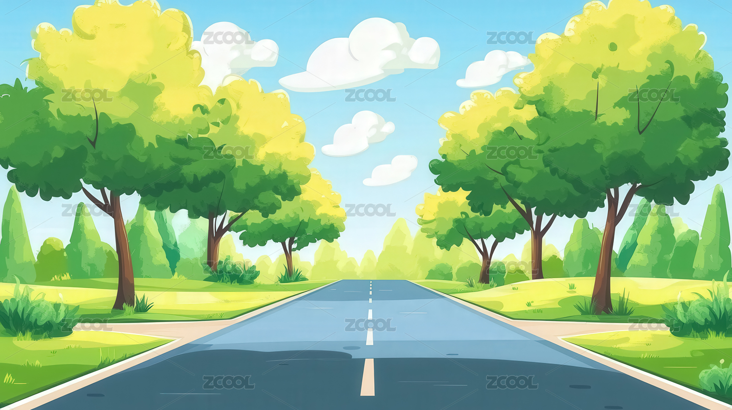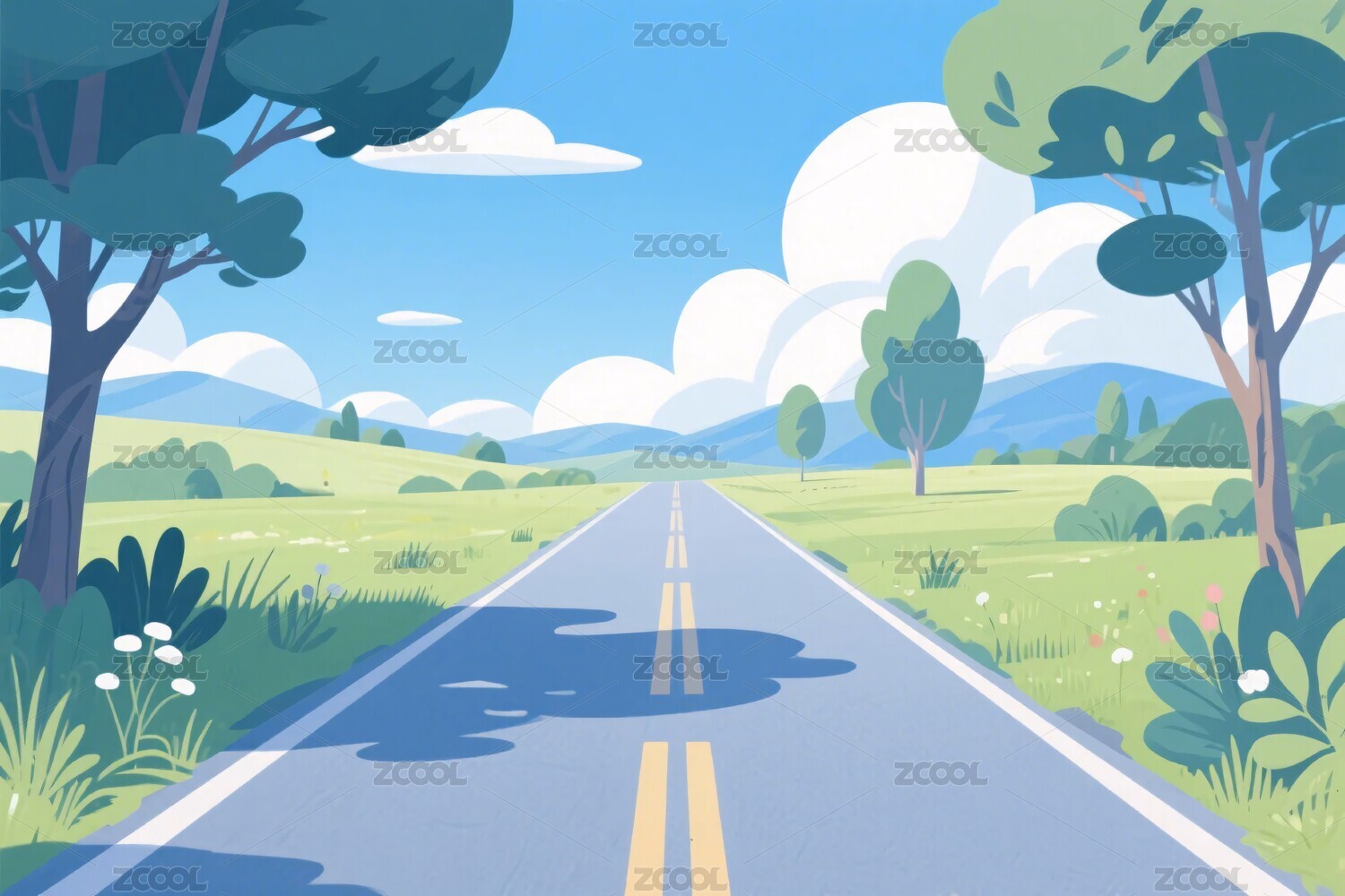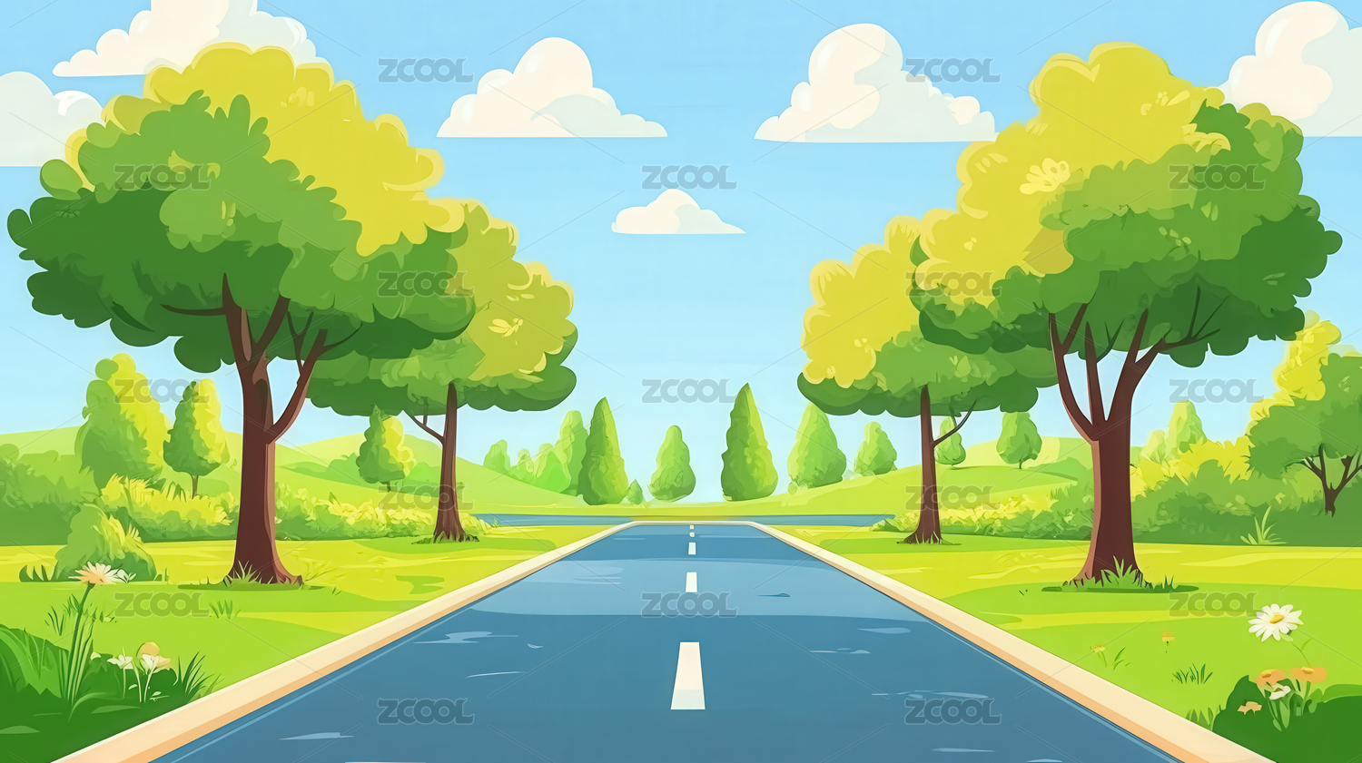 卡通道路风景插画