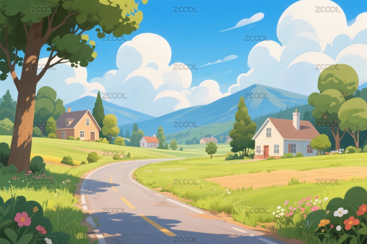 卡通乡村风景插画