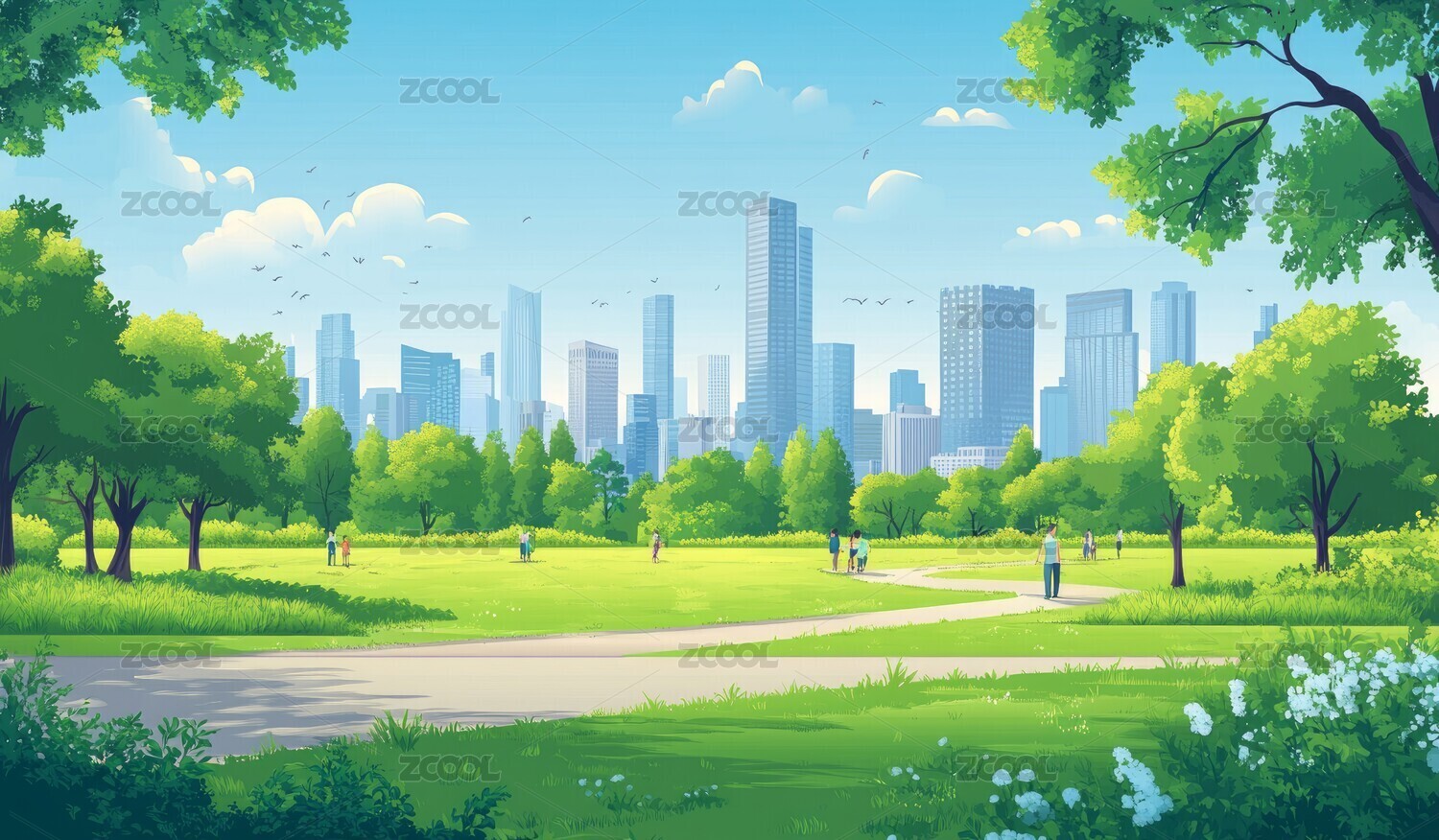 卡通城市公园风景插画