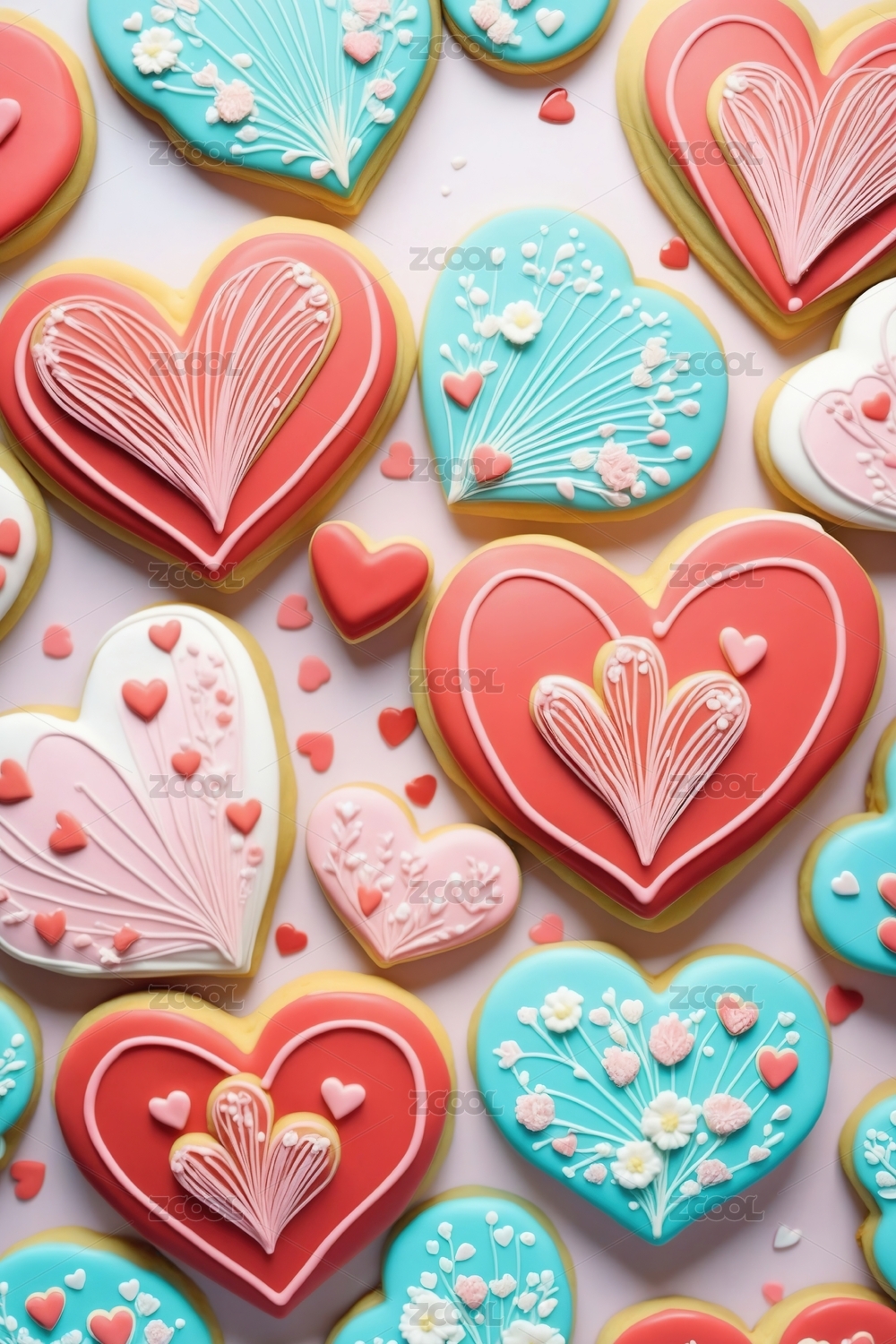 多彩心形饼干撒满彩色糖粒