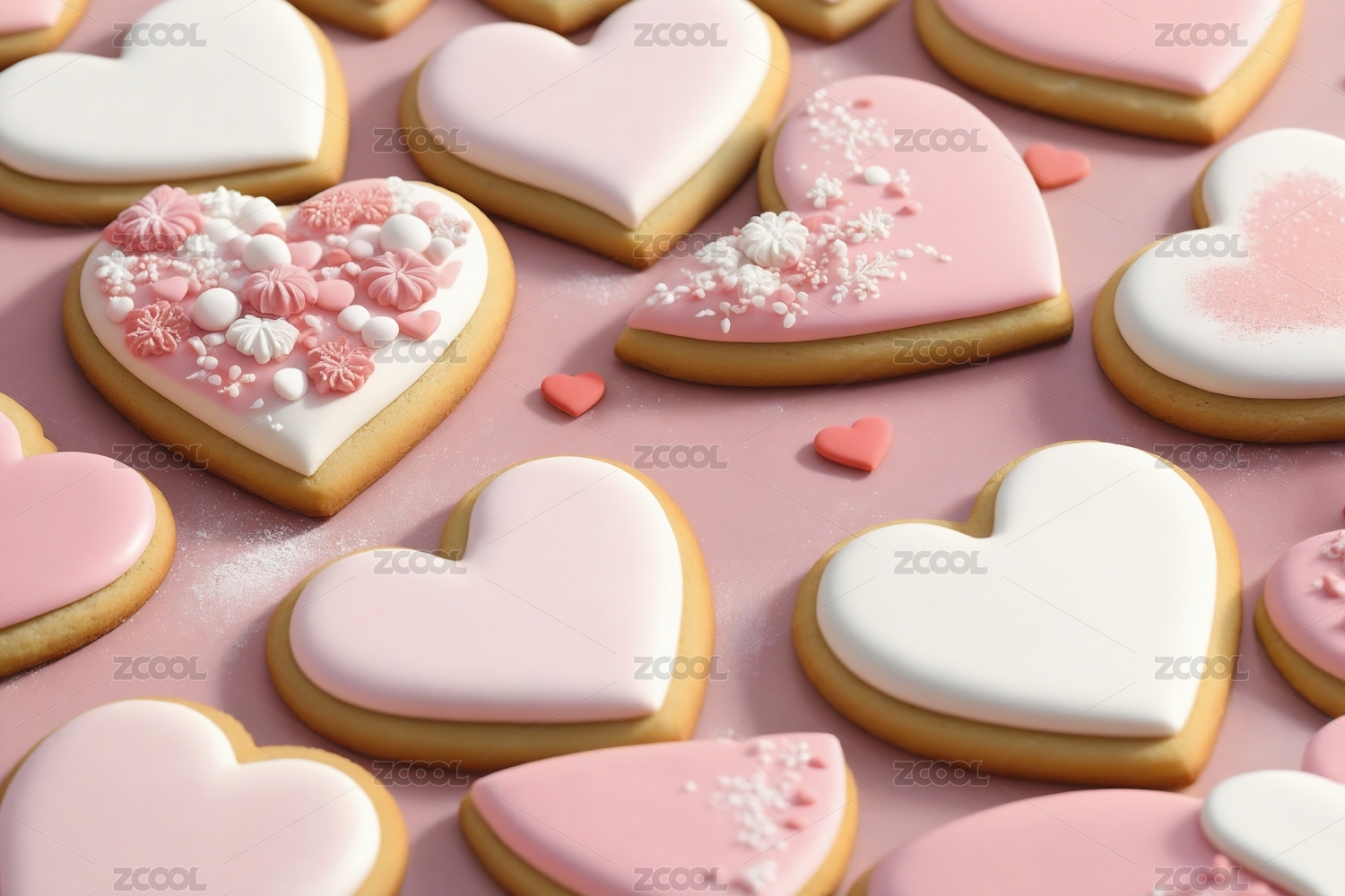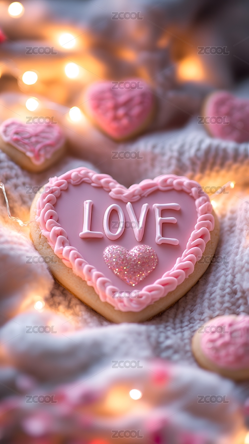 粉色心形饼干甜点