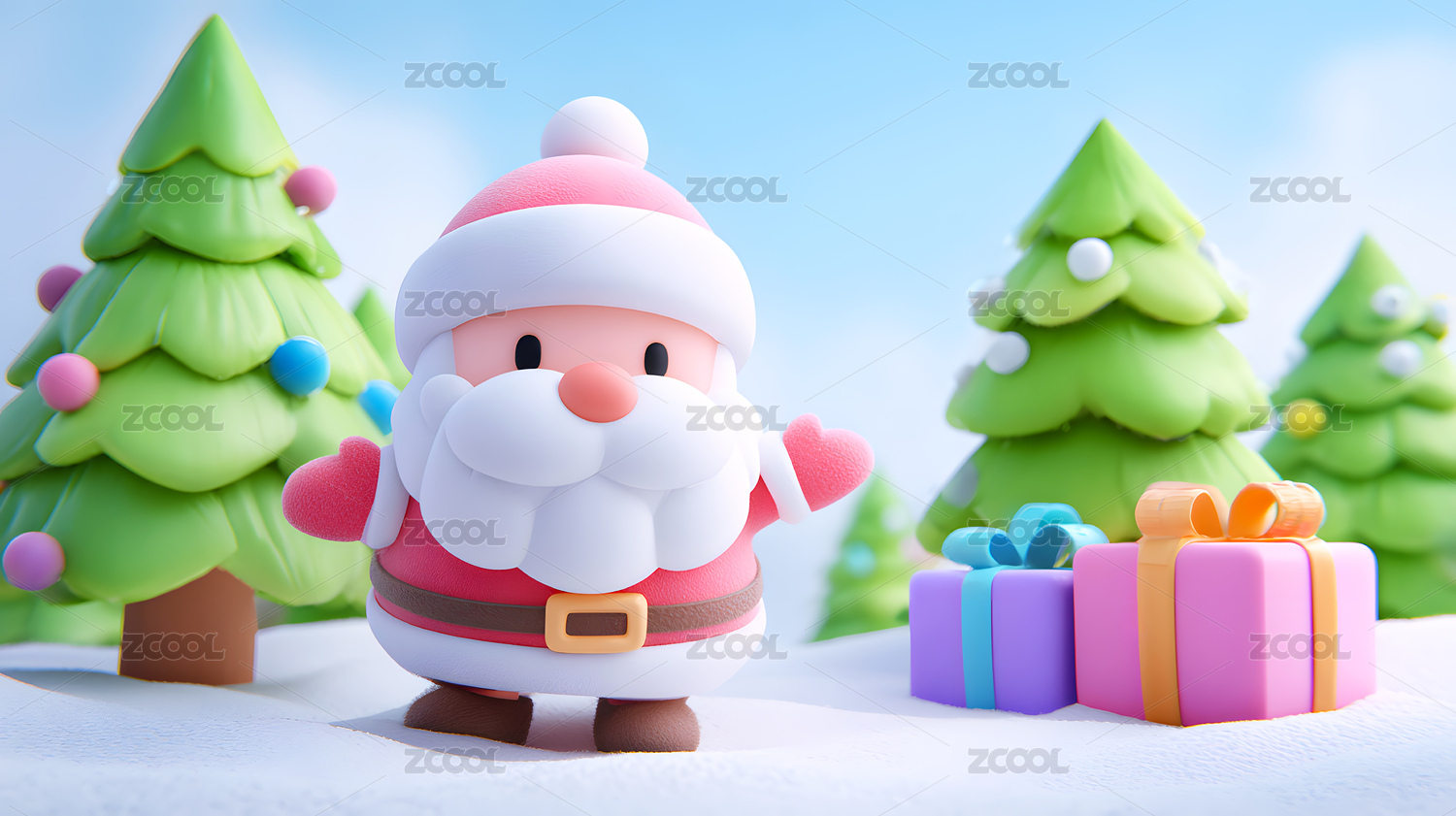 3D圣诞老人雪地礼物