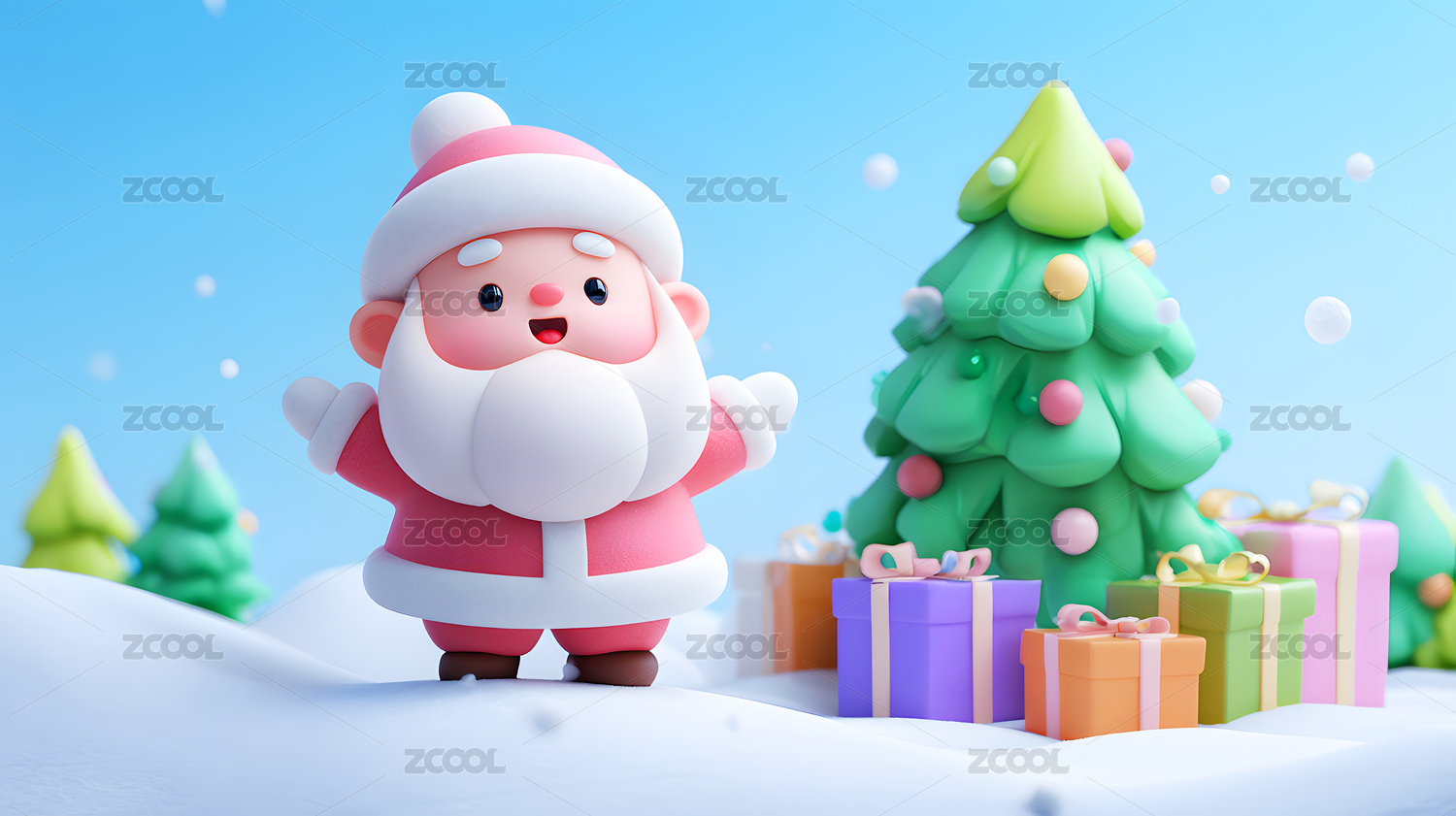 可爱圣诞节雪花圣诞老人3D插画