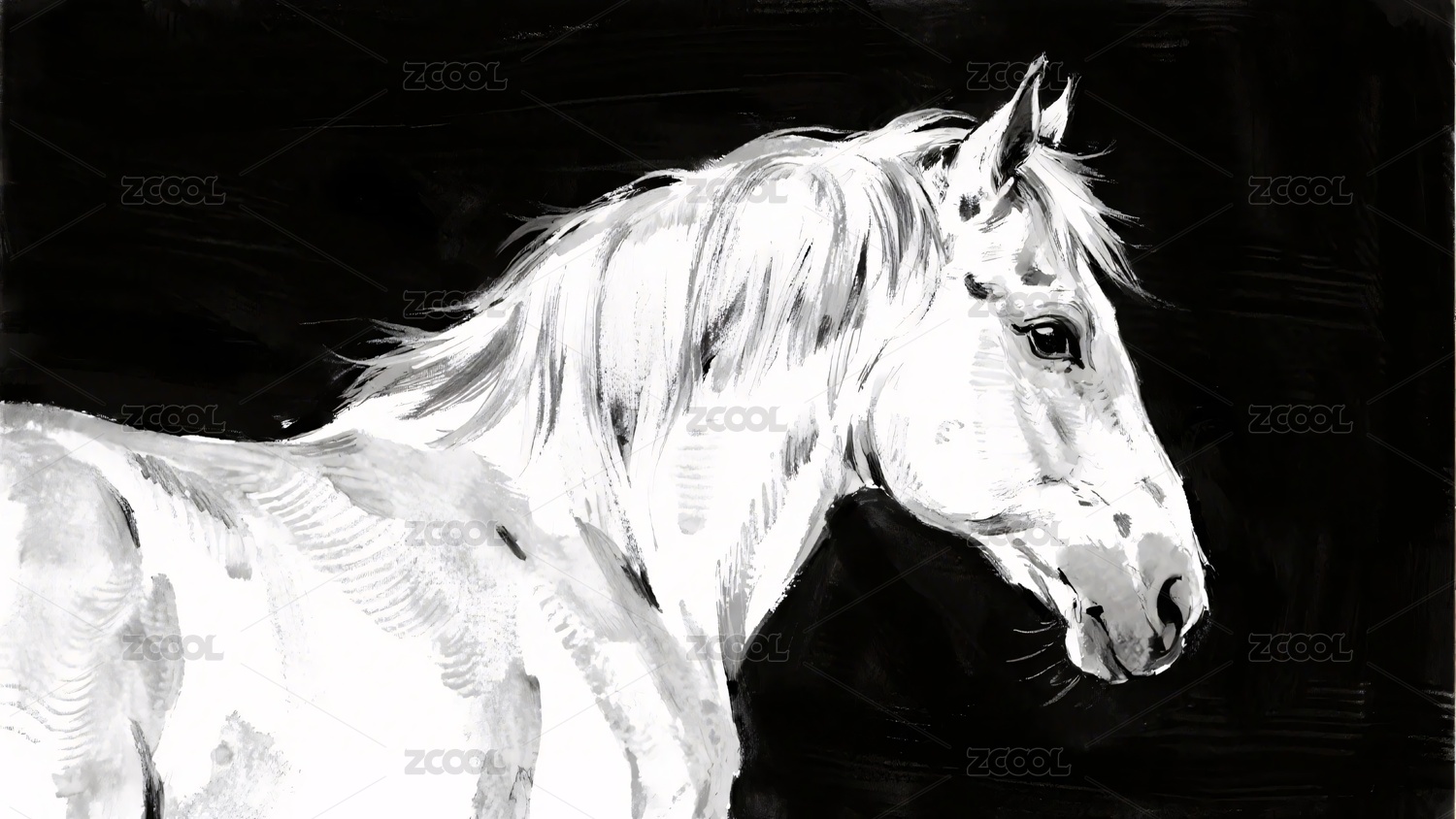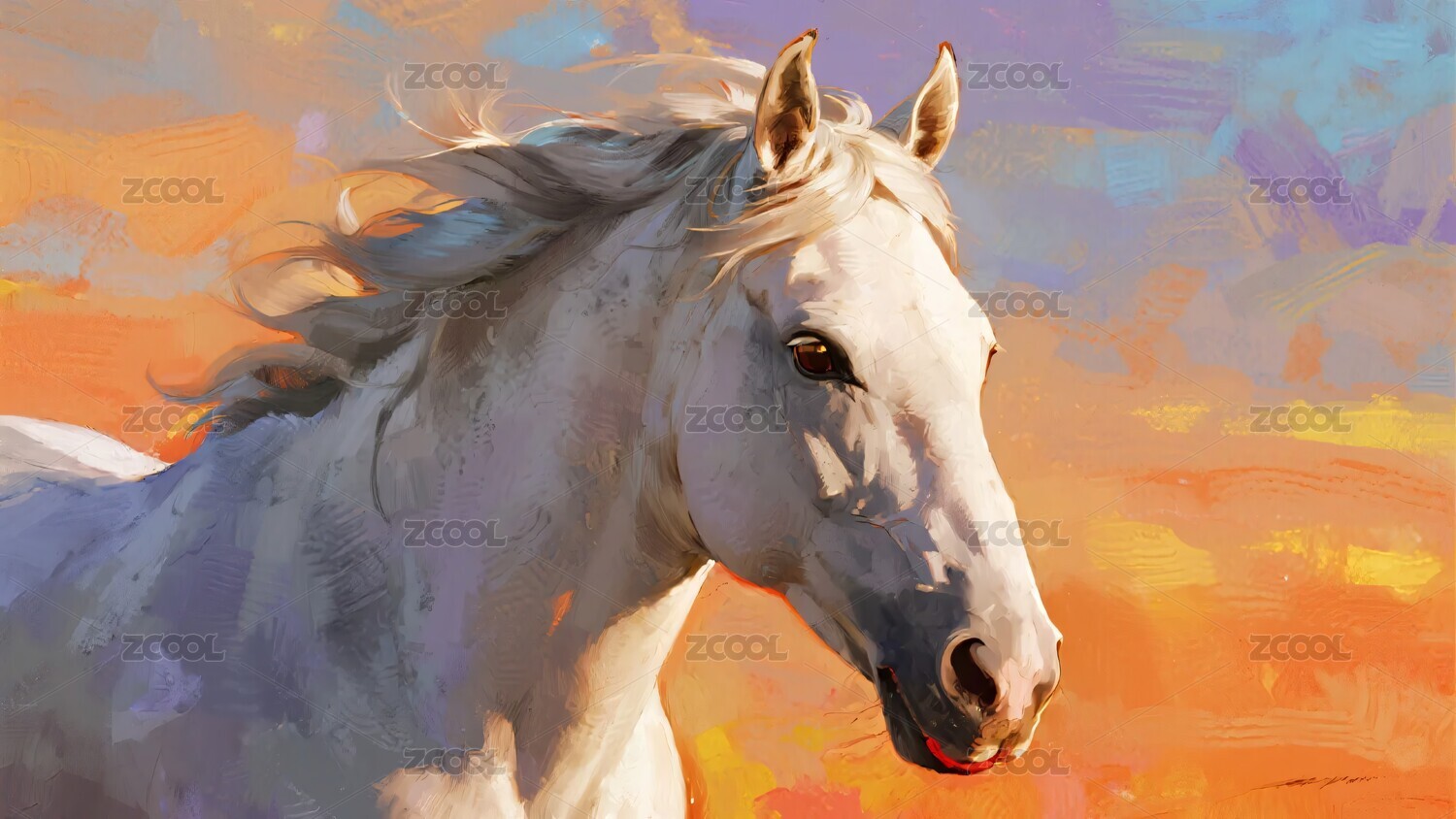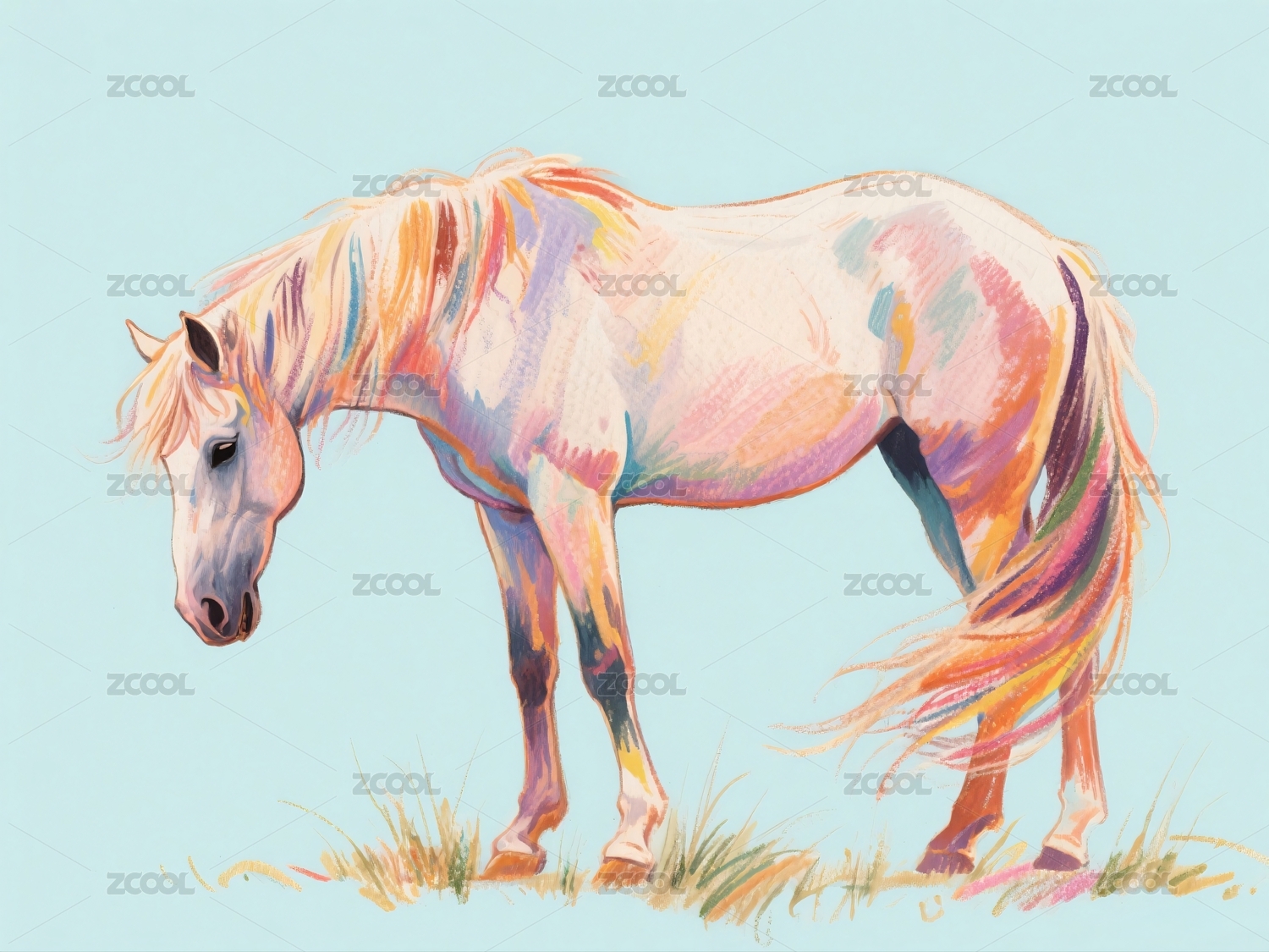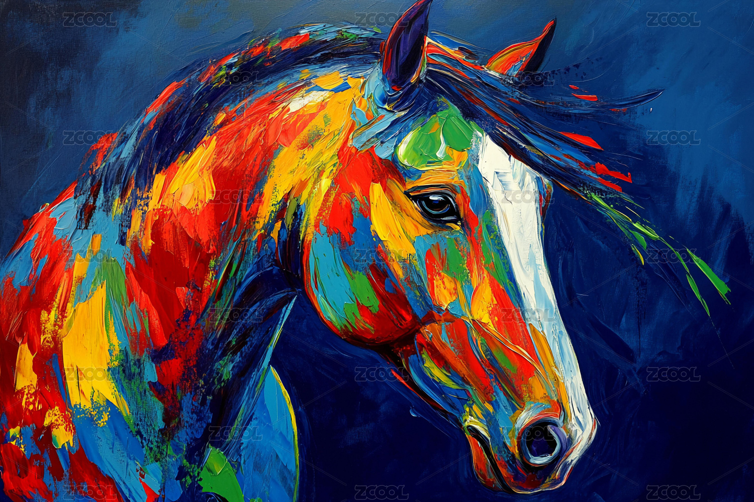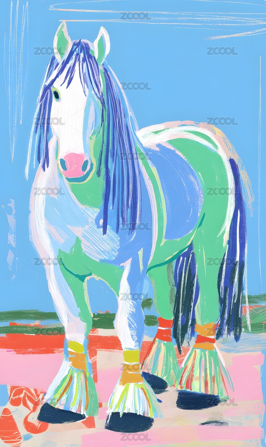 抽象,绿色,艺术,草地,天空,风景,美丽,马匹,彩绘,蓝马