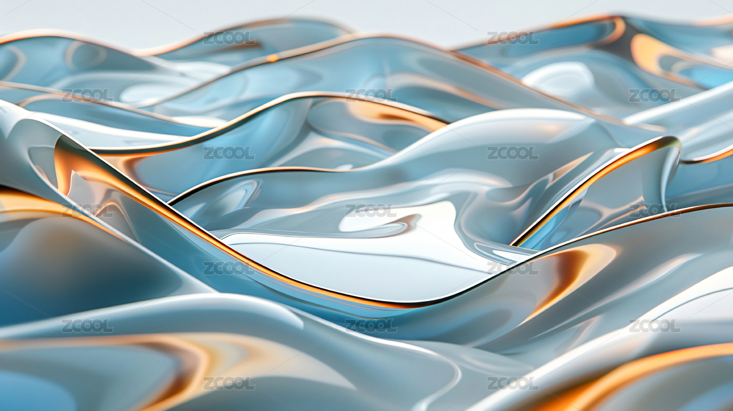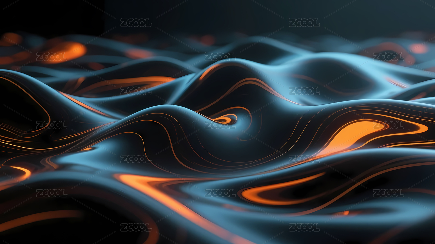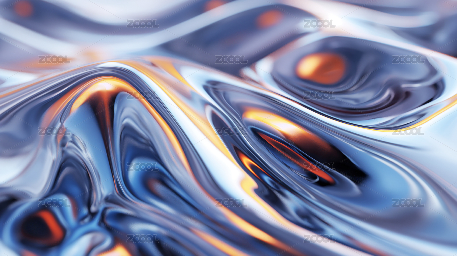 蓝色和橙色金属液体流动质感背景