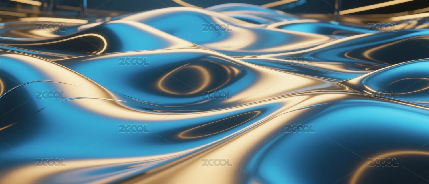 蓝金流体波纹抽象背景图