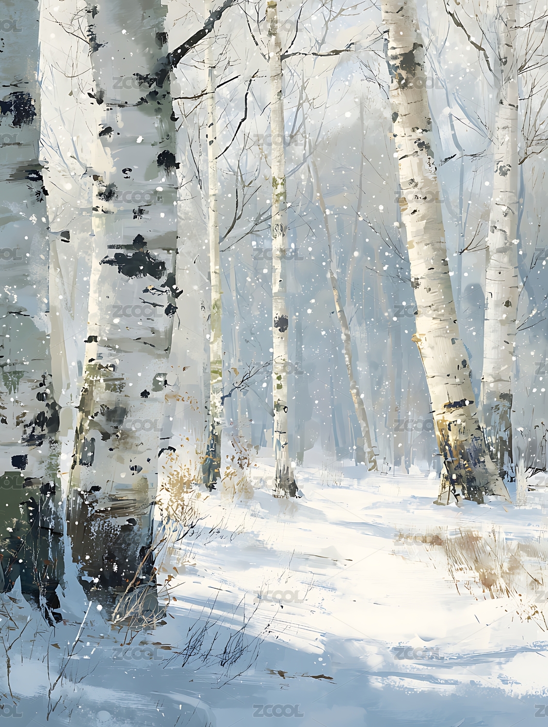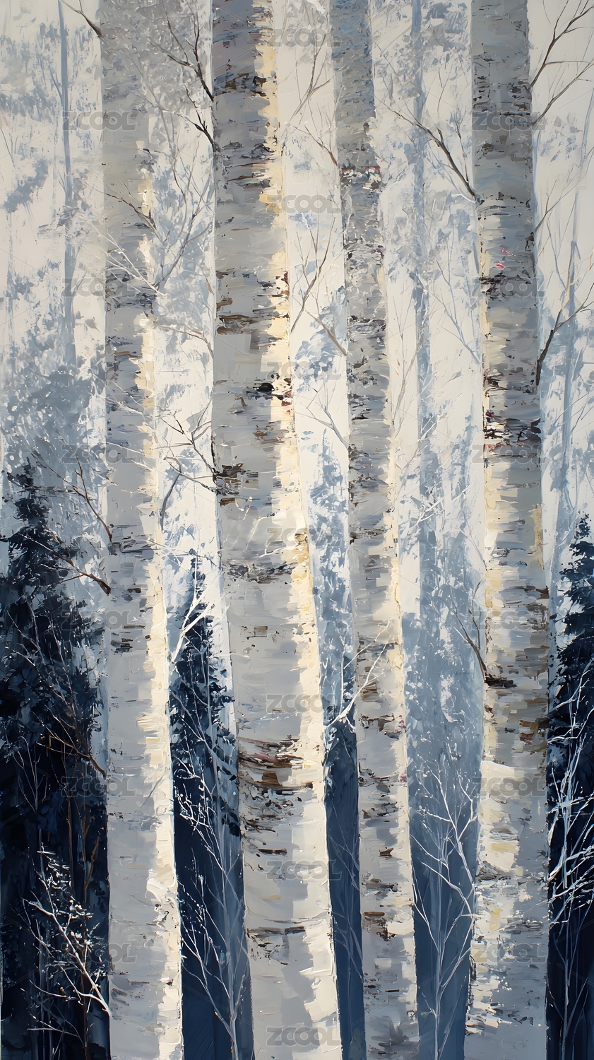 树木,森林,光影,树干,静谧,风景,冬天,白色,寒冷,抽象