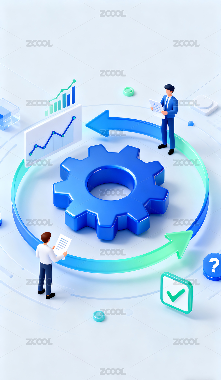 蓝色,齿轮,商务,科技,办公,背景,插画,清新