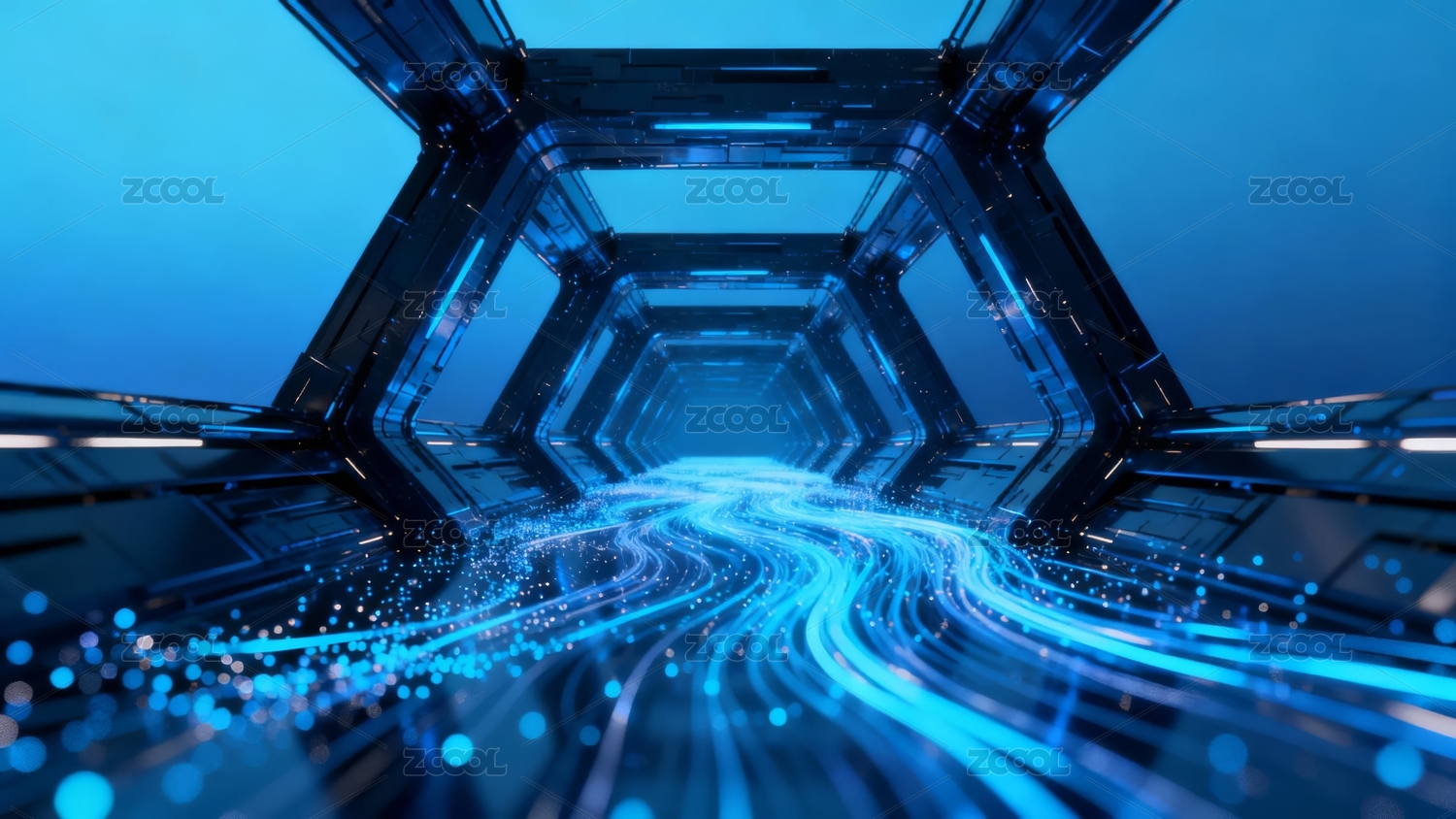 蓝色科技隧道光效场景