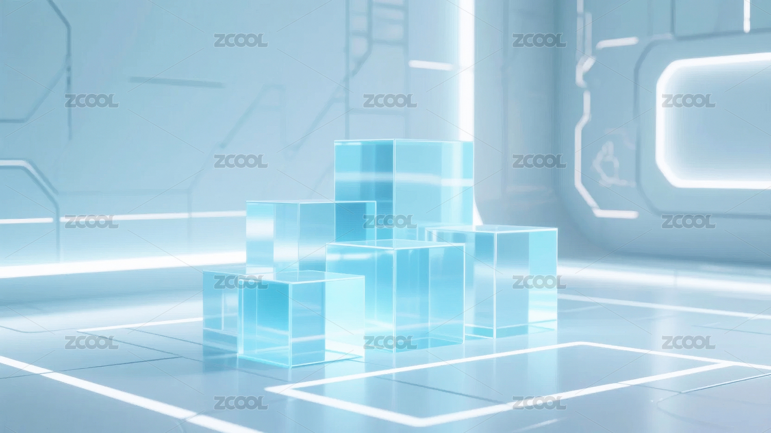 蓝色玻璃方块科技感场景