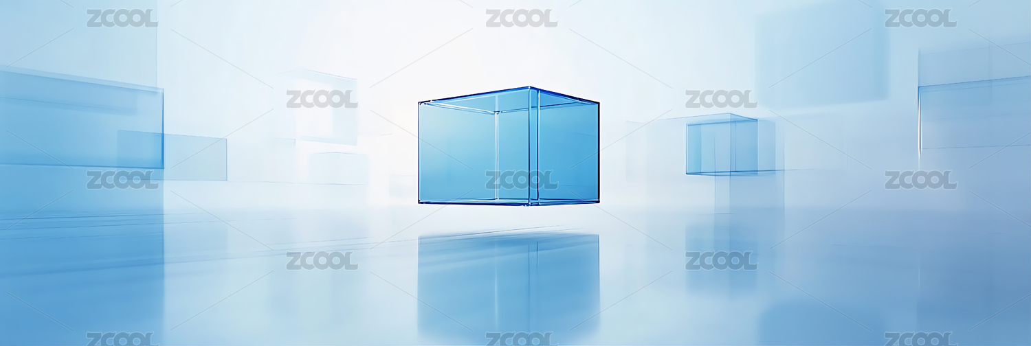 透明蓝色立方体的科技感展示