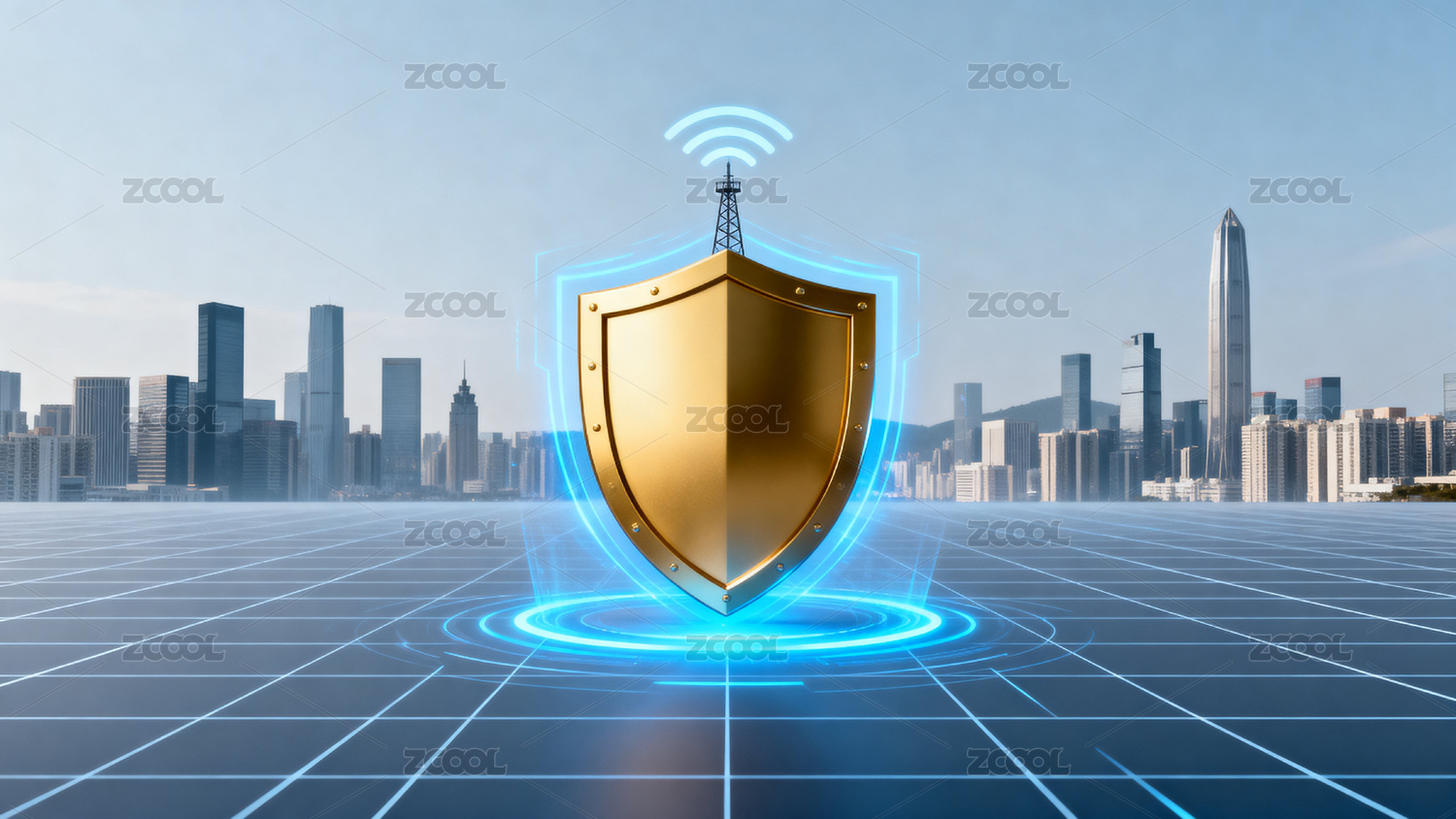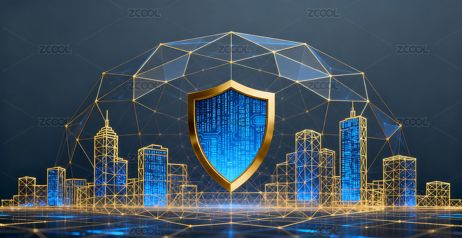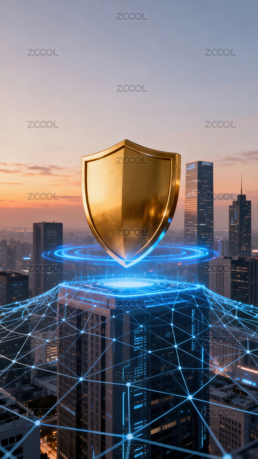 建筑,城市,高楼,科技,未来,数字,盾牌,网络,安全,网格