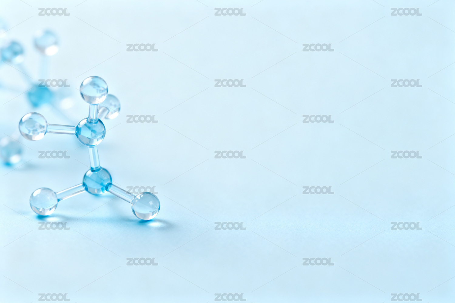 蓝色的干净的水滴玻璃球组成的甲烷CH4分子