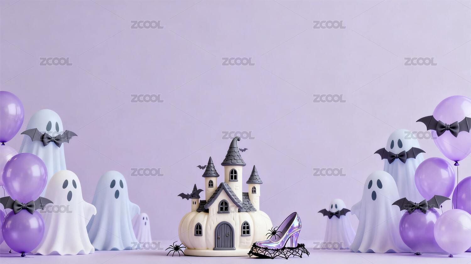 「梦幻万圣时尚」幽灵城堡气球电商横幅