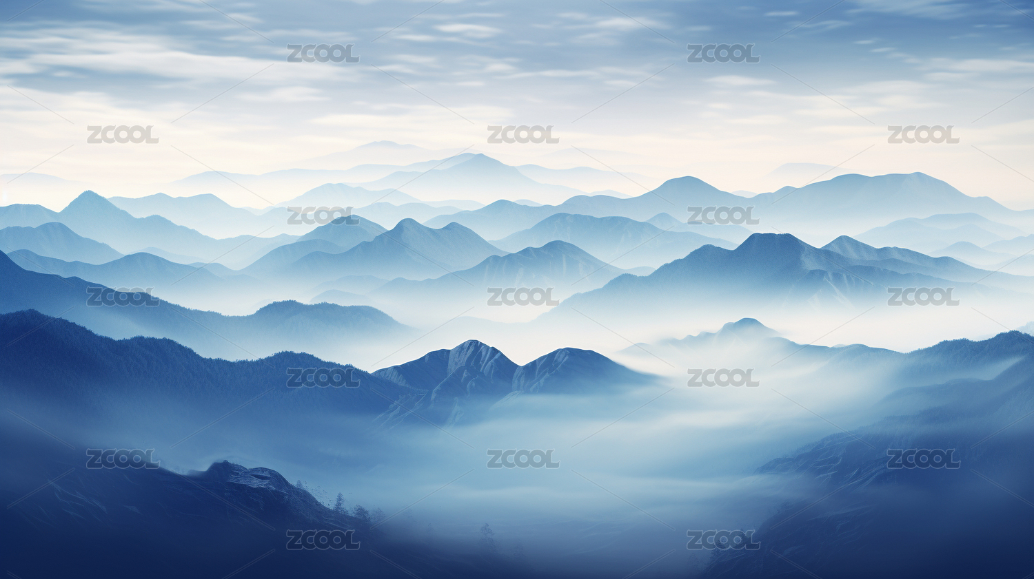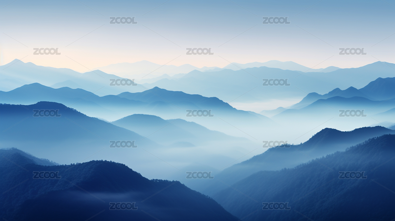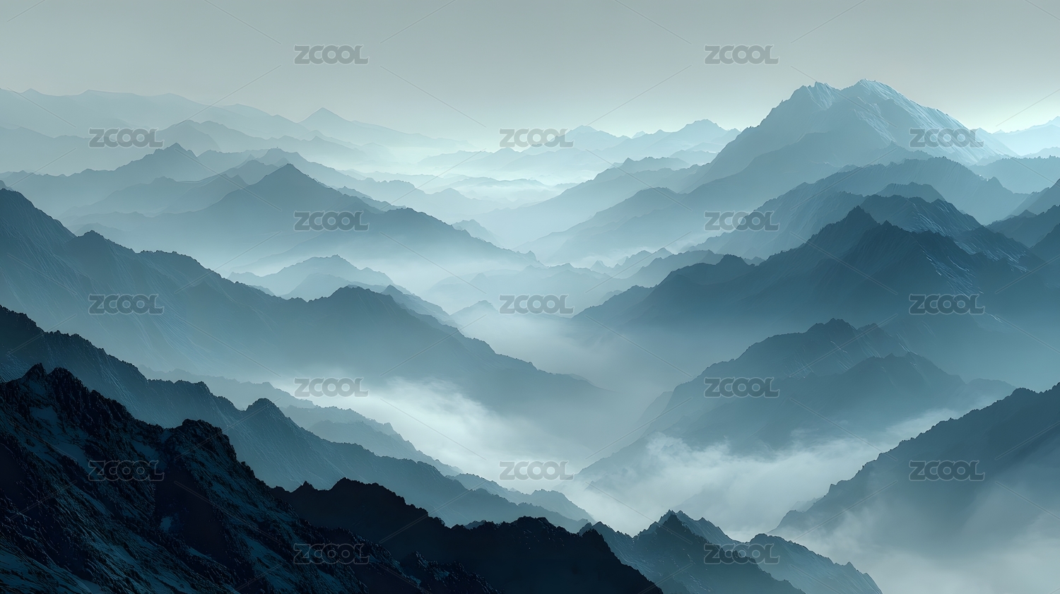 山脉,山峰,云海,雾气,远景,自然,层次,朦胧,天空,晨雾