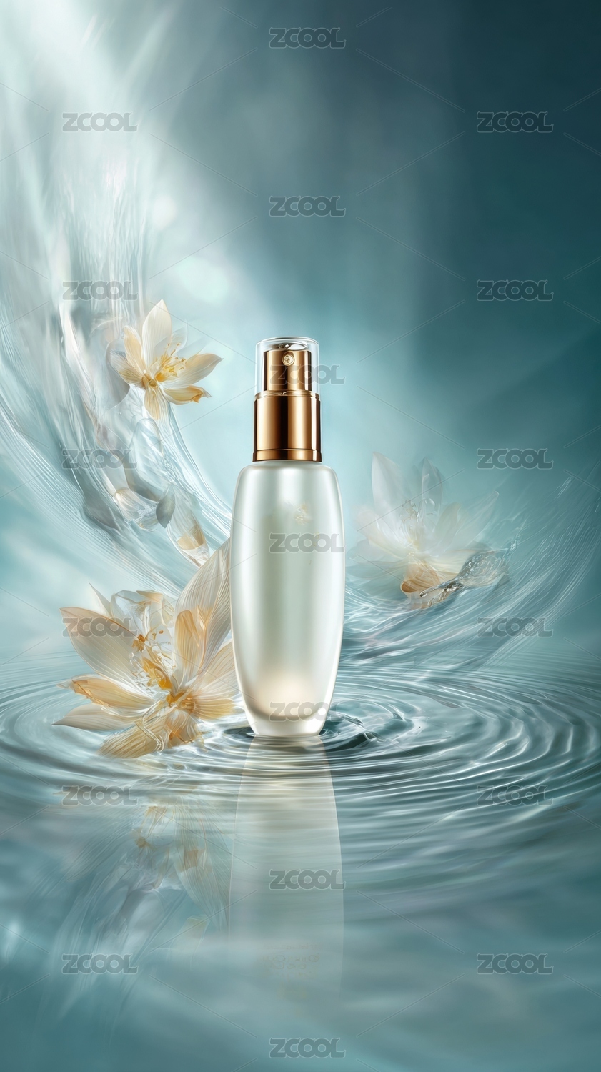 3D橙色发光玻璃瓶子化妆用品创意广告背景