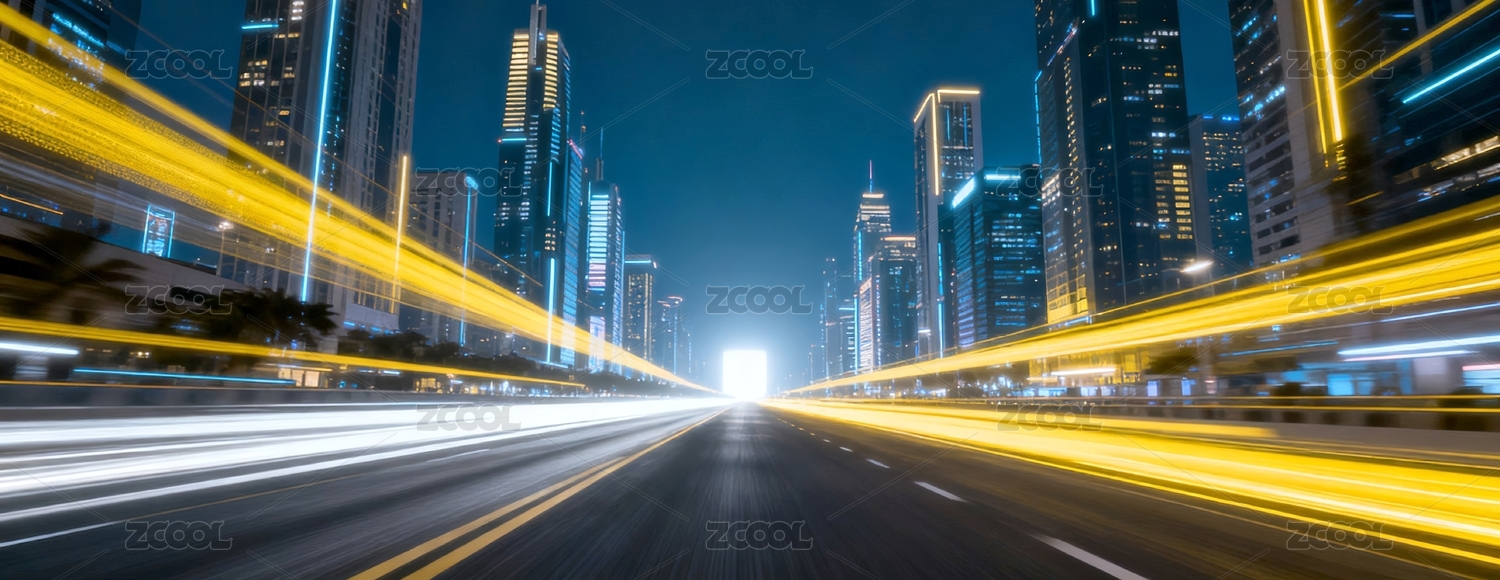 未来城市中自动驾驶汽车高速行驶的科技场景