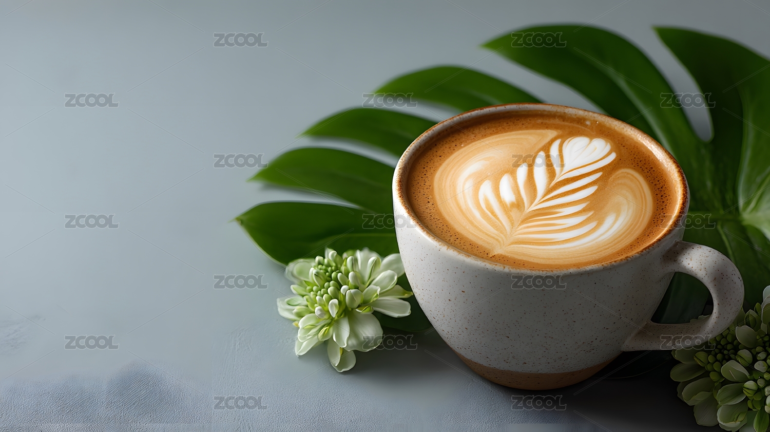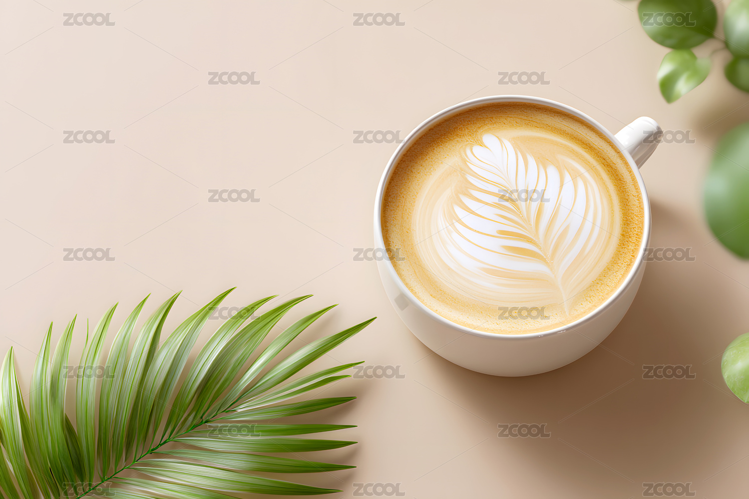 咖啡拉花特写配绿植清新温馨