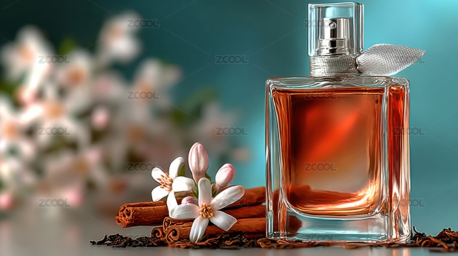 香水瓶与花朵的优雅意境