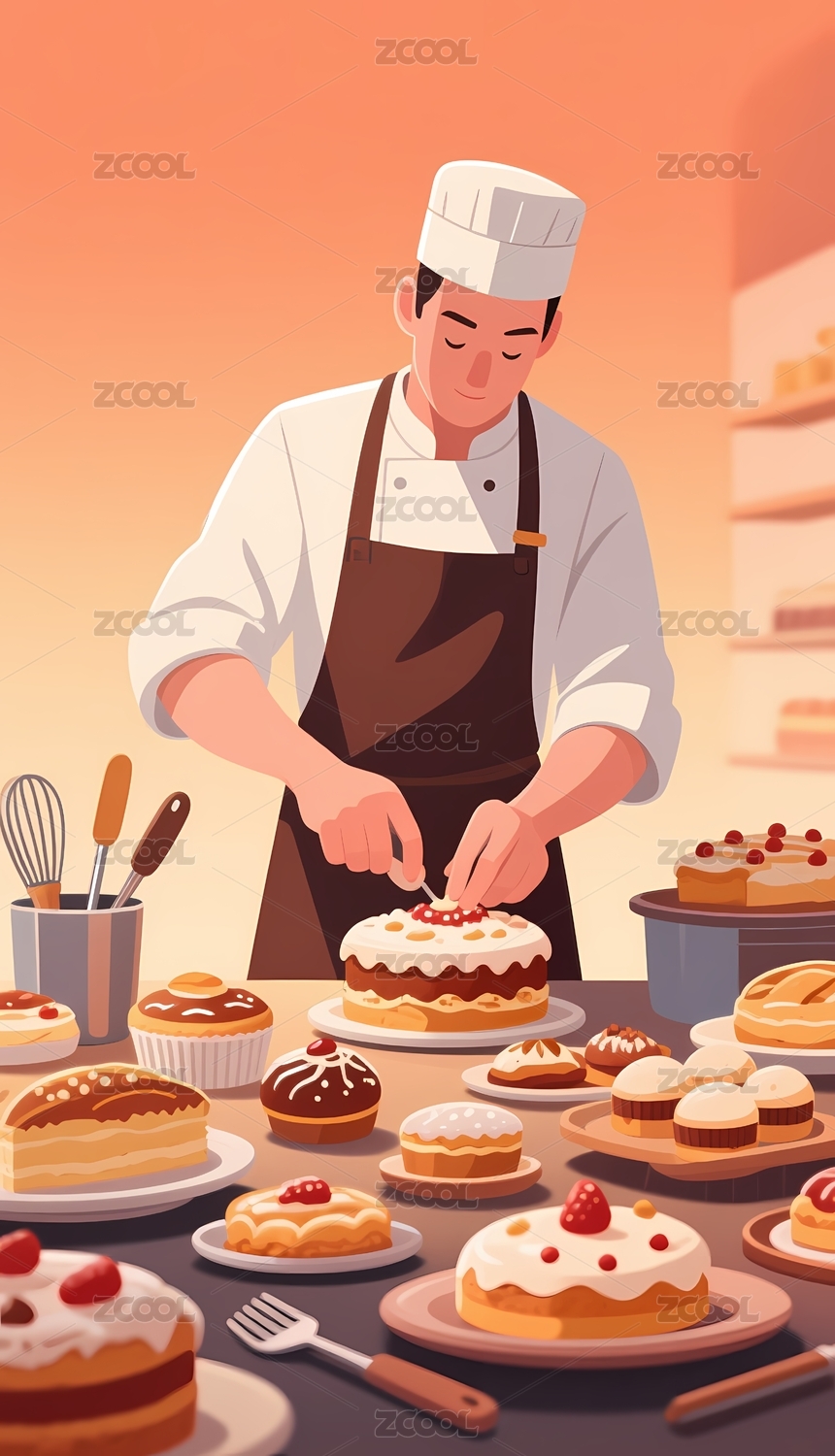 甜点制作插画