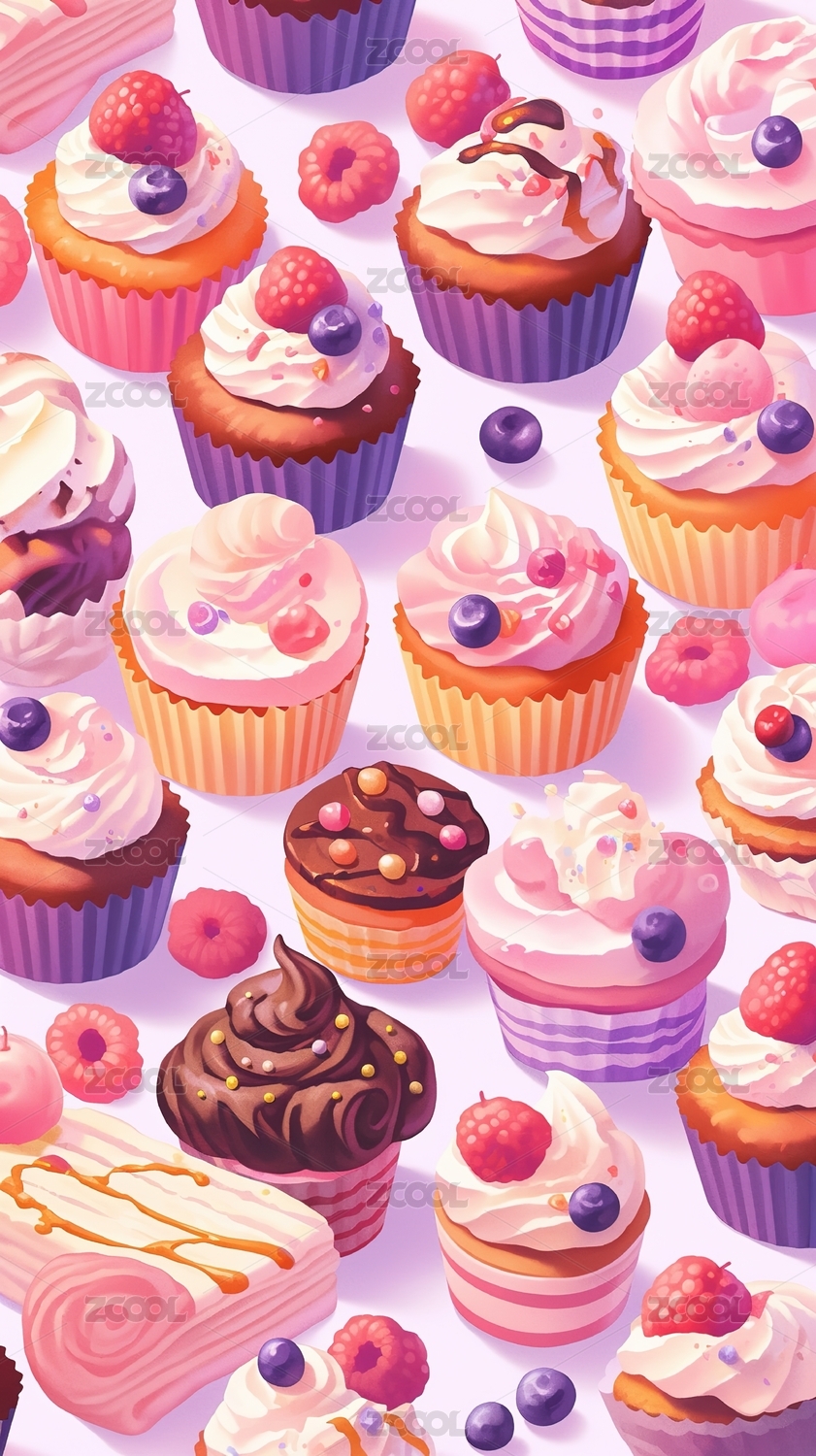 美味蛋糕甜品无缝图案