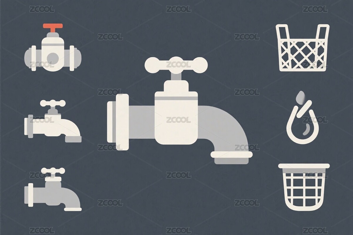 水龙头,洗衣篮,水阀,图标,插画,矢量,工具,设施,平面,设计