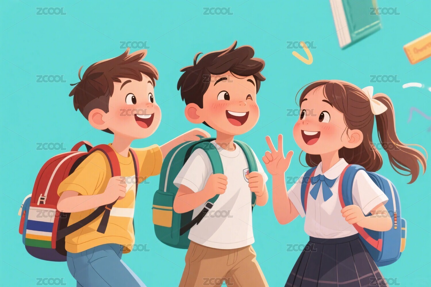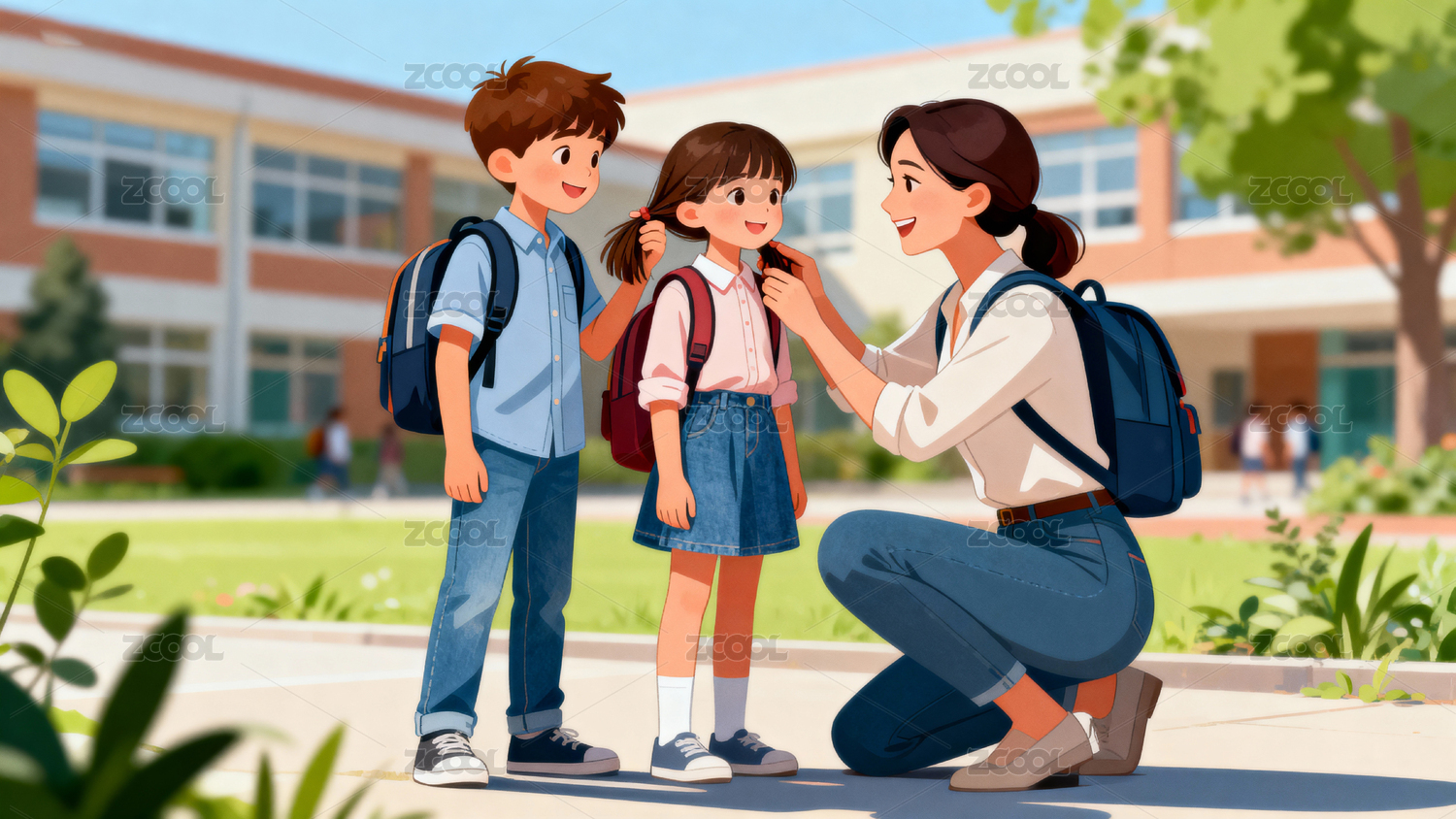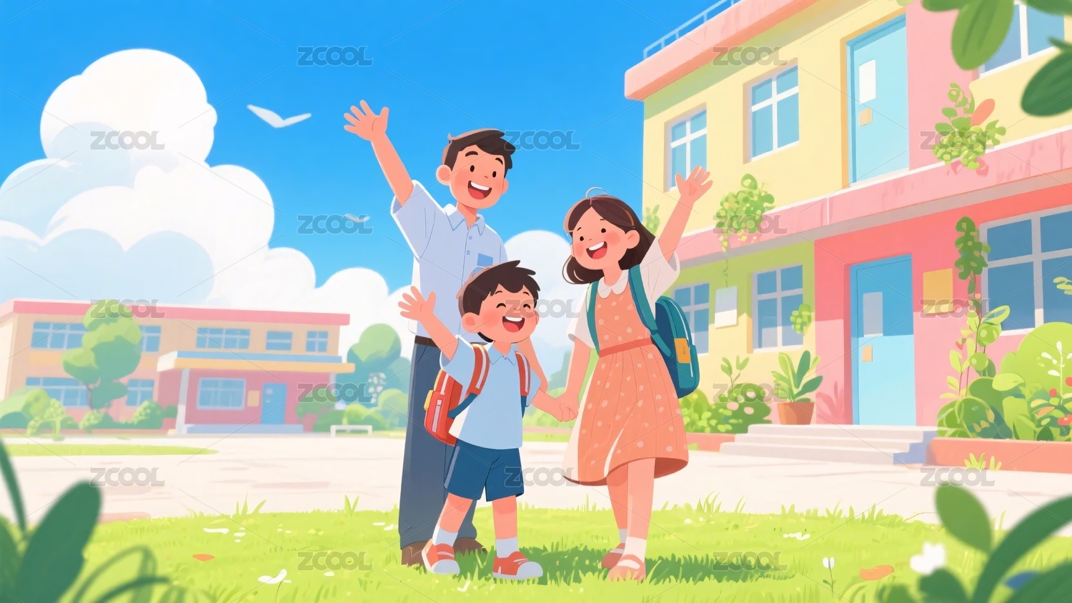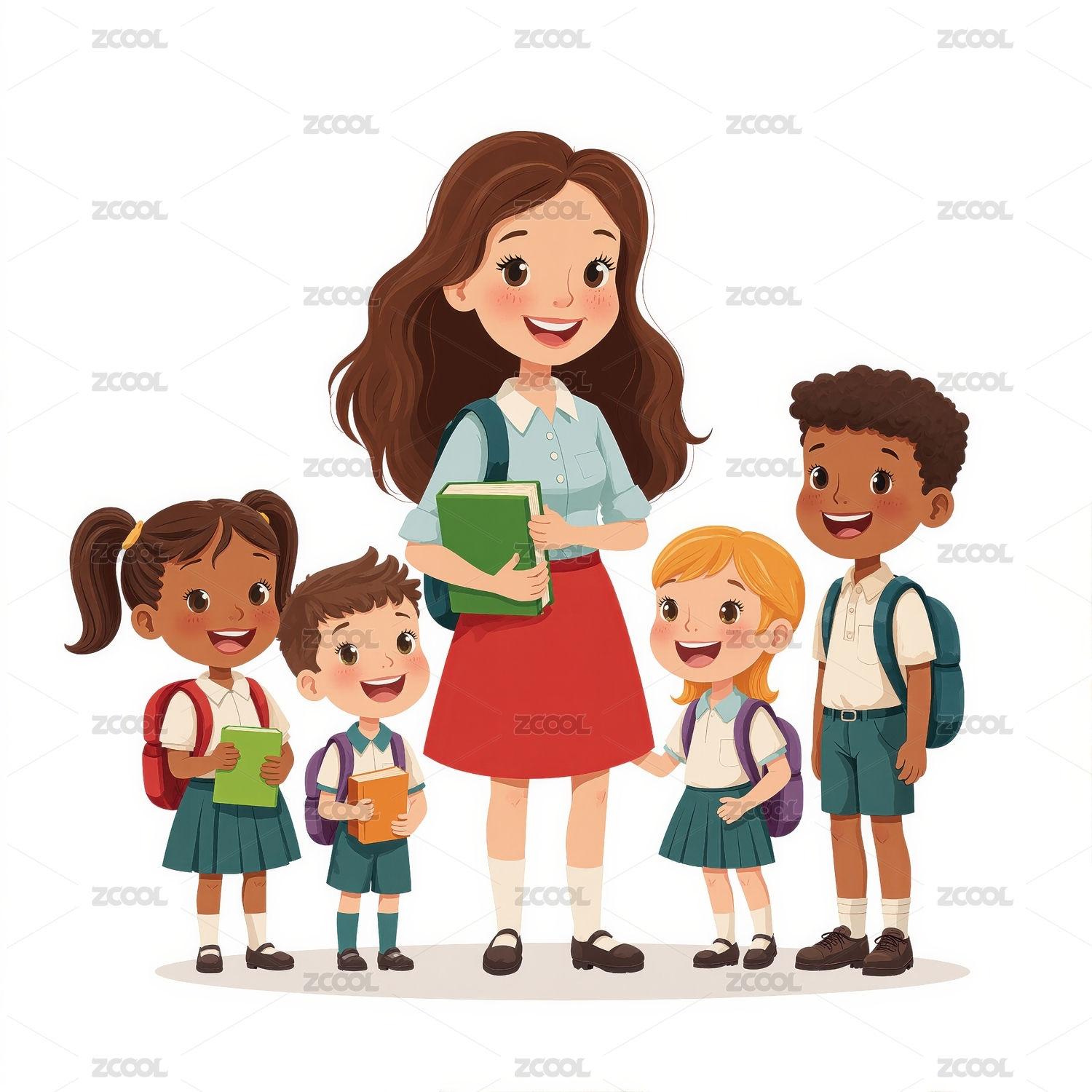 老师,孩子,书包,问候,校园,插画,矢量,教育,儿童,卡通