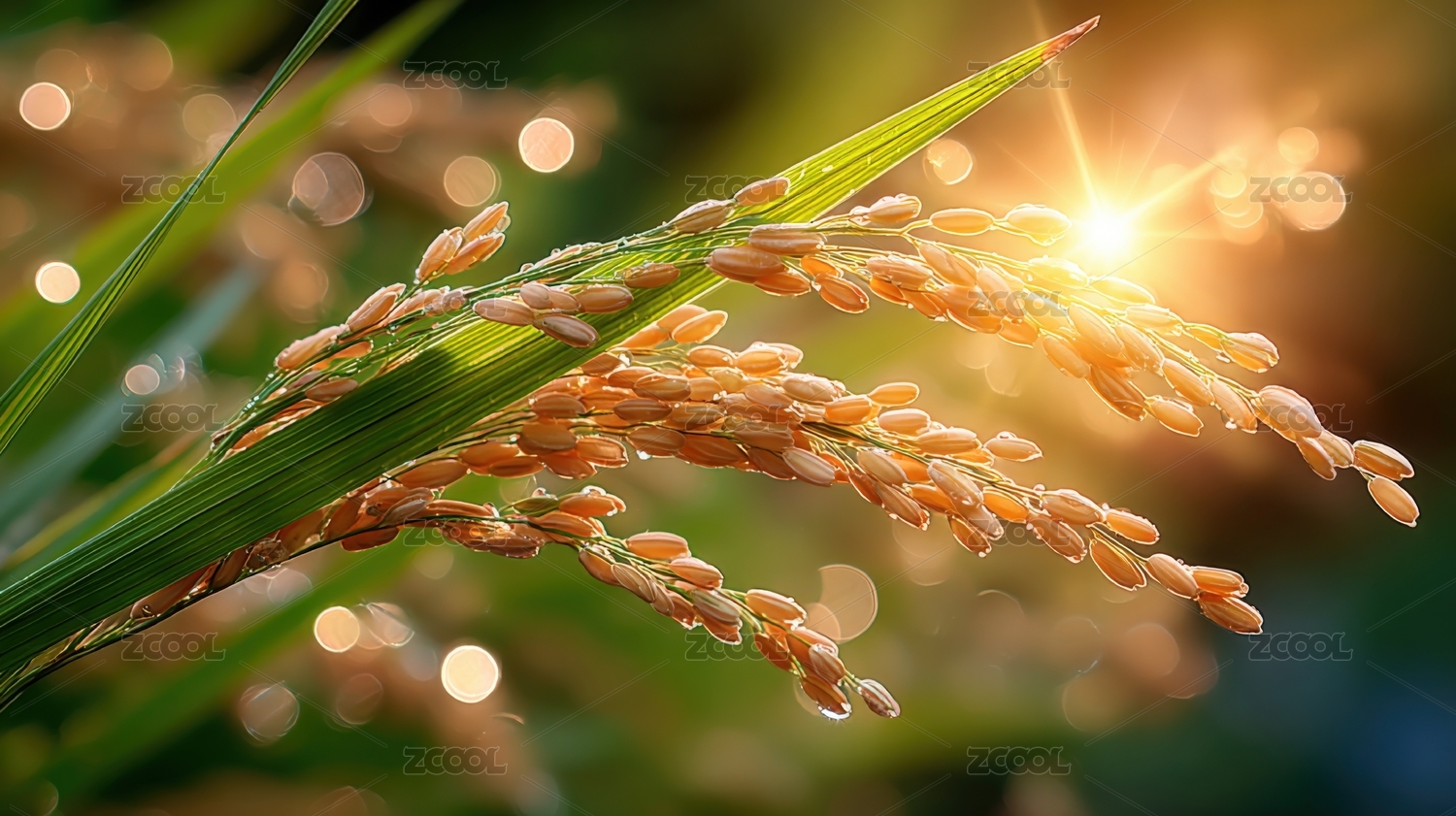 阳光下的稻穗特写