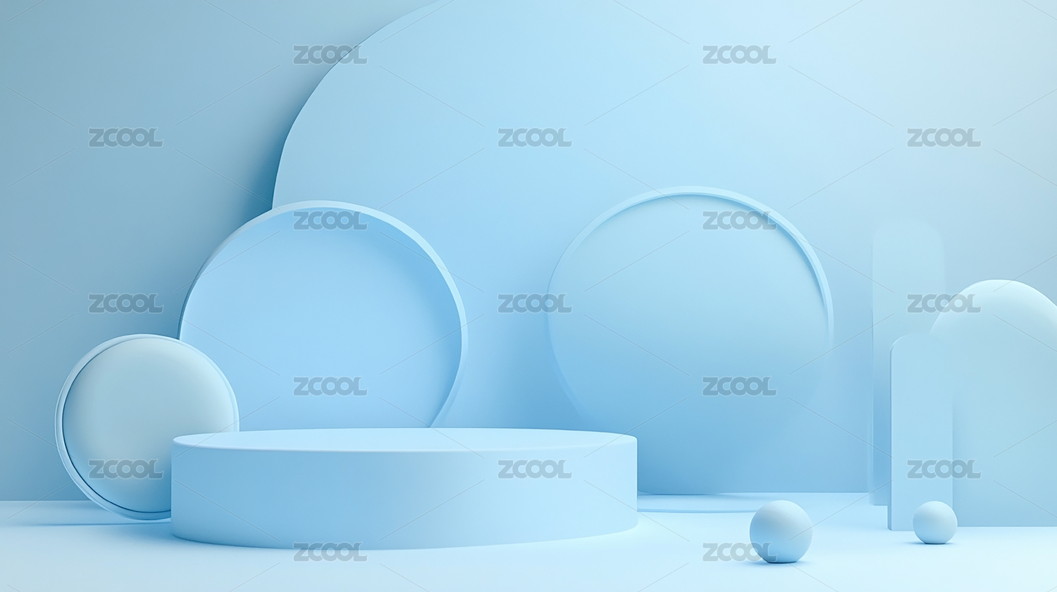 蓝色几何形状组合场景