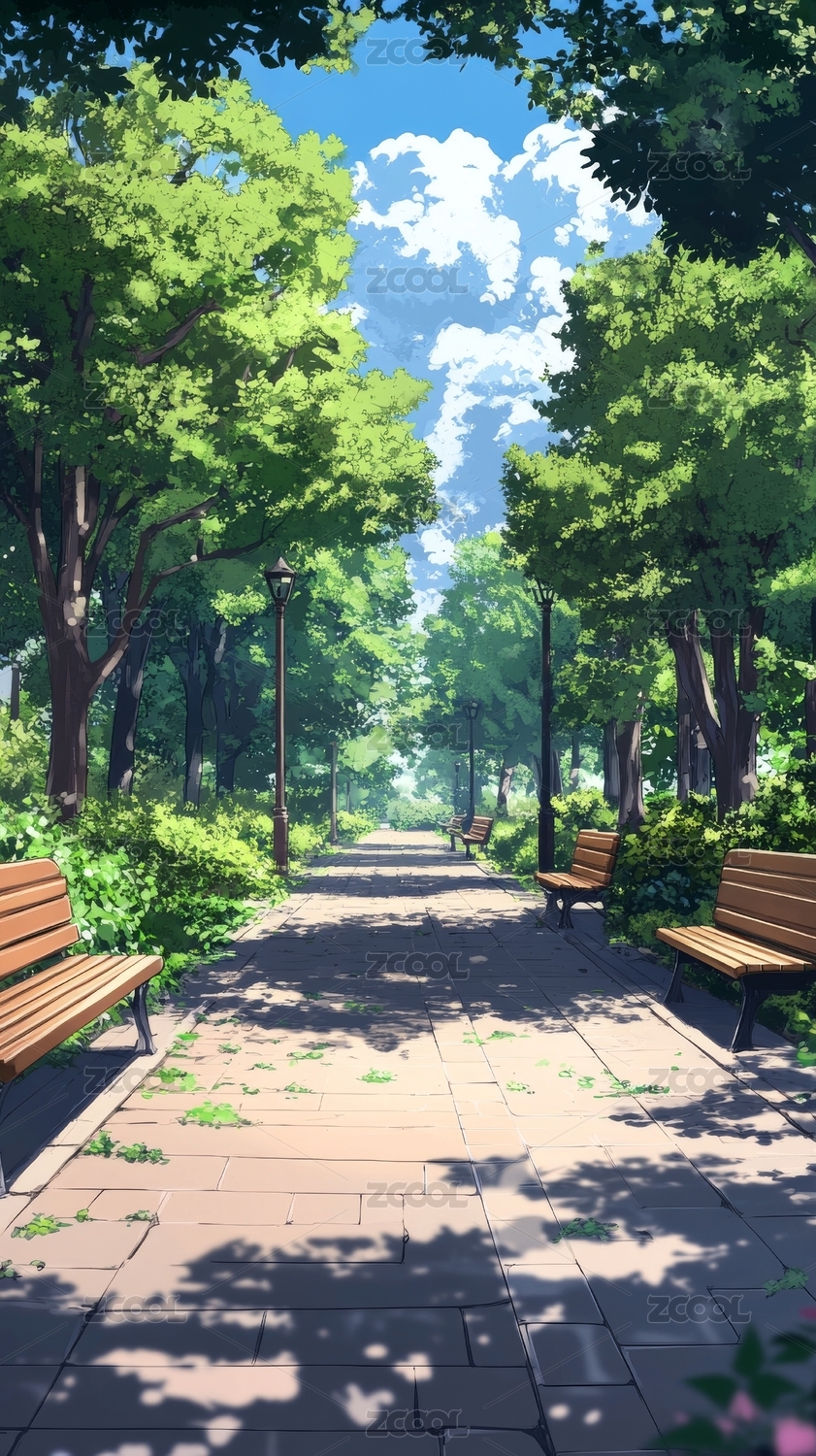 自然风景公园长椅唯美插画