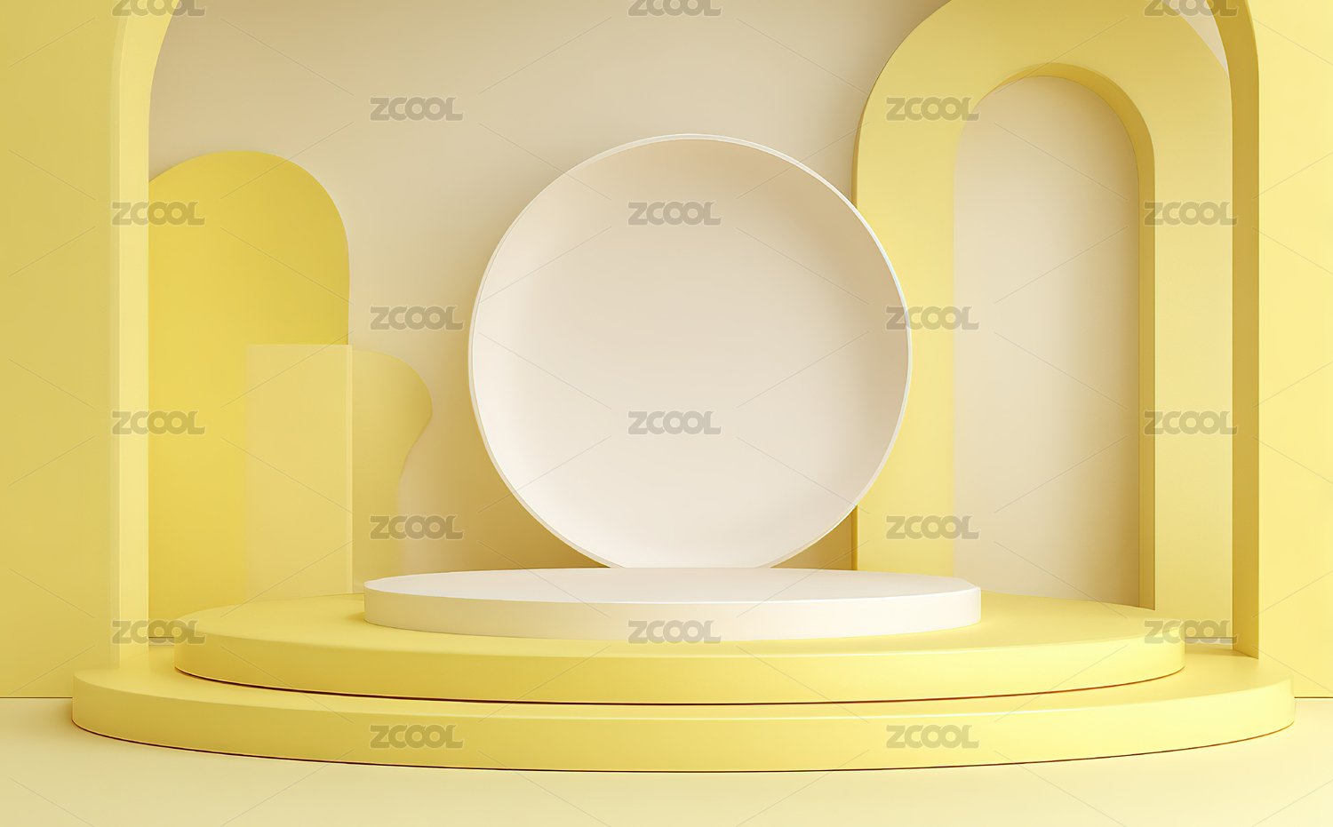 黄色几何场景中的圆形展示台