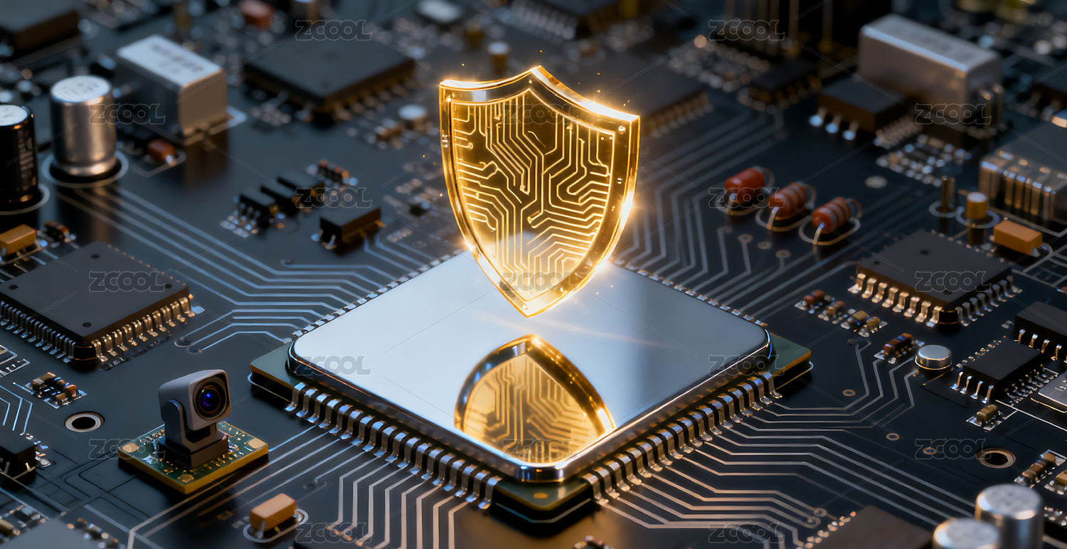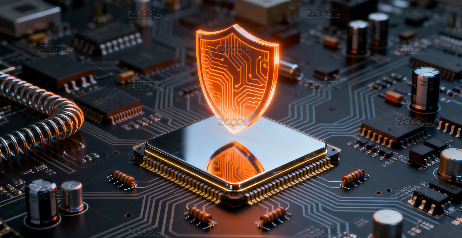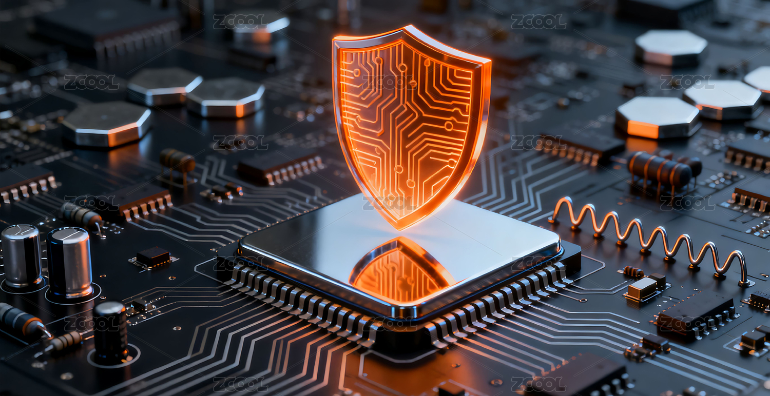 商务,科技,芯片,盾牌,安全,护盾,橙色