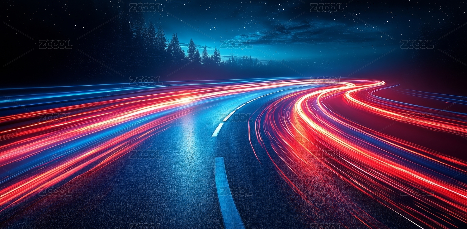 夜幕下的发光高速公路