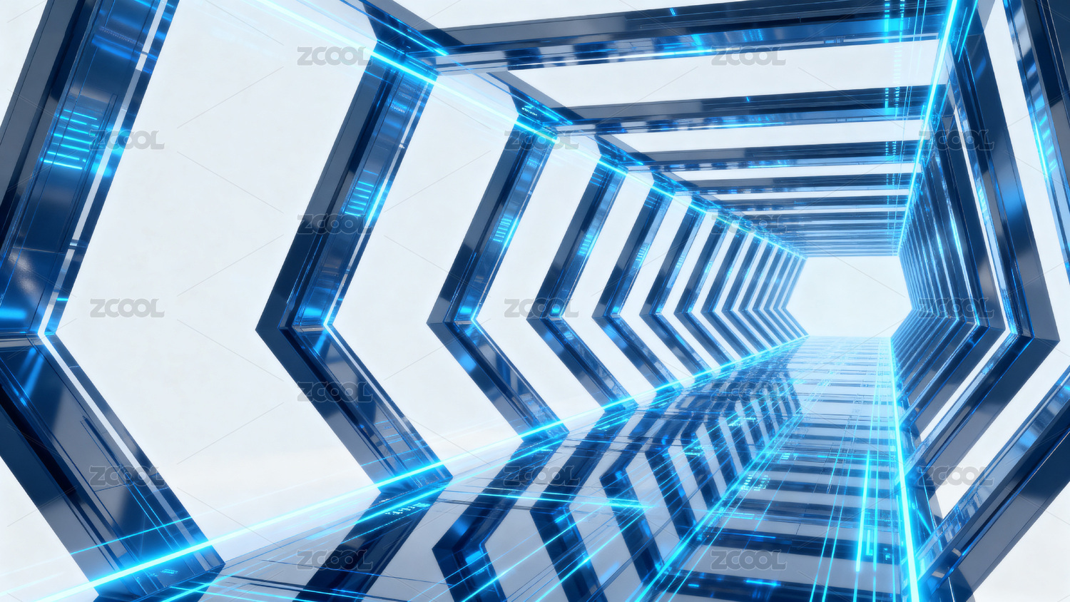 蓝色几何隧道光影效果