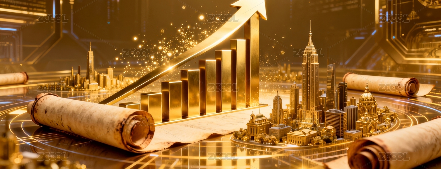 金色柱状图与红色上升箭头