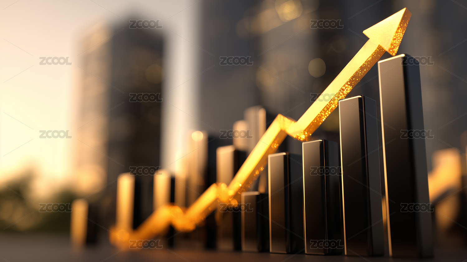 金色金融经济柱状图箭头增长城市建筑背景