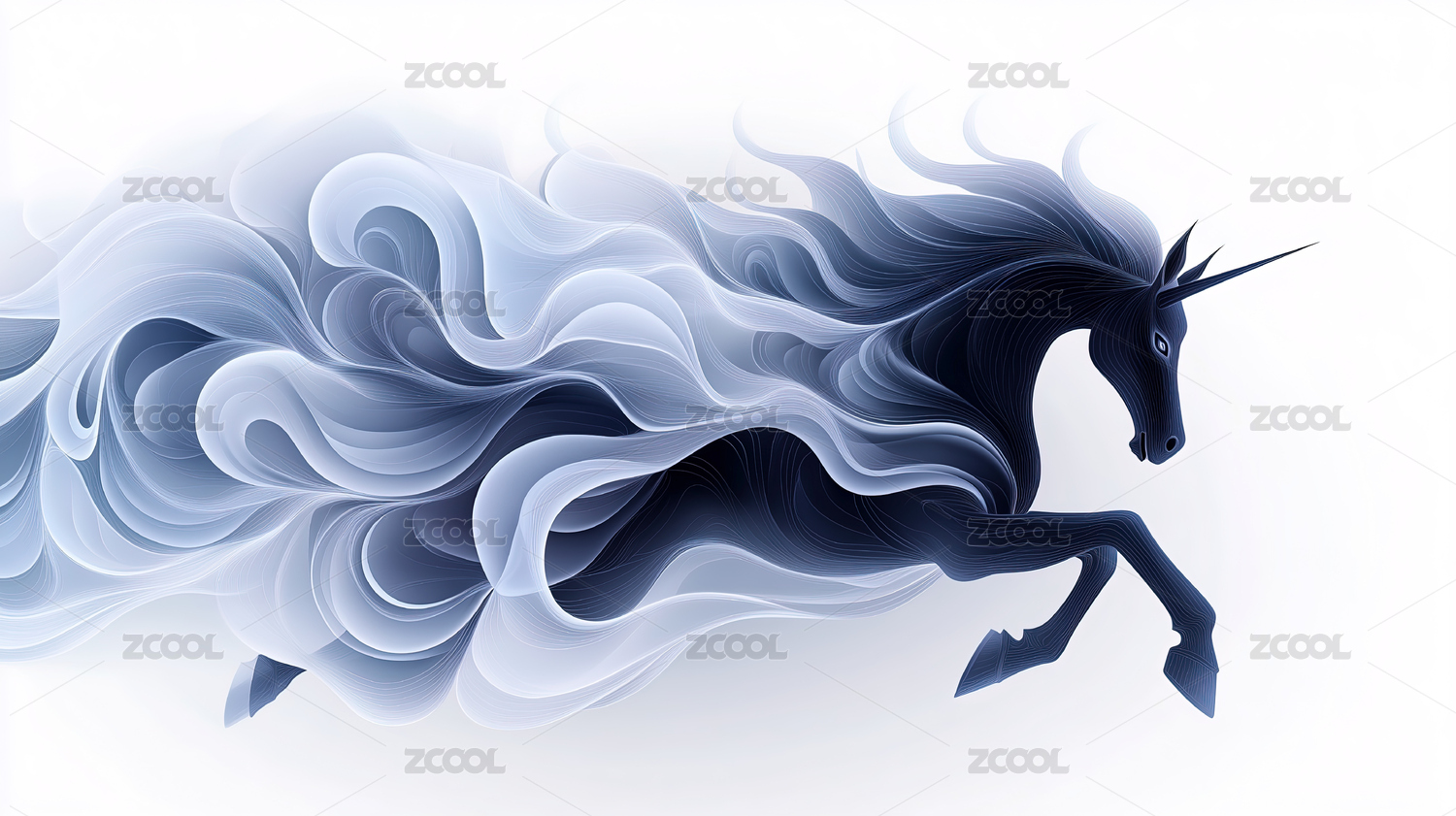 我用流畅且富有节奏的线条勾勒出独角兽的头部,