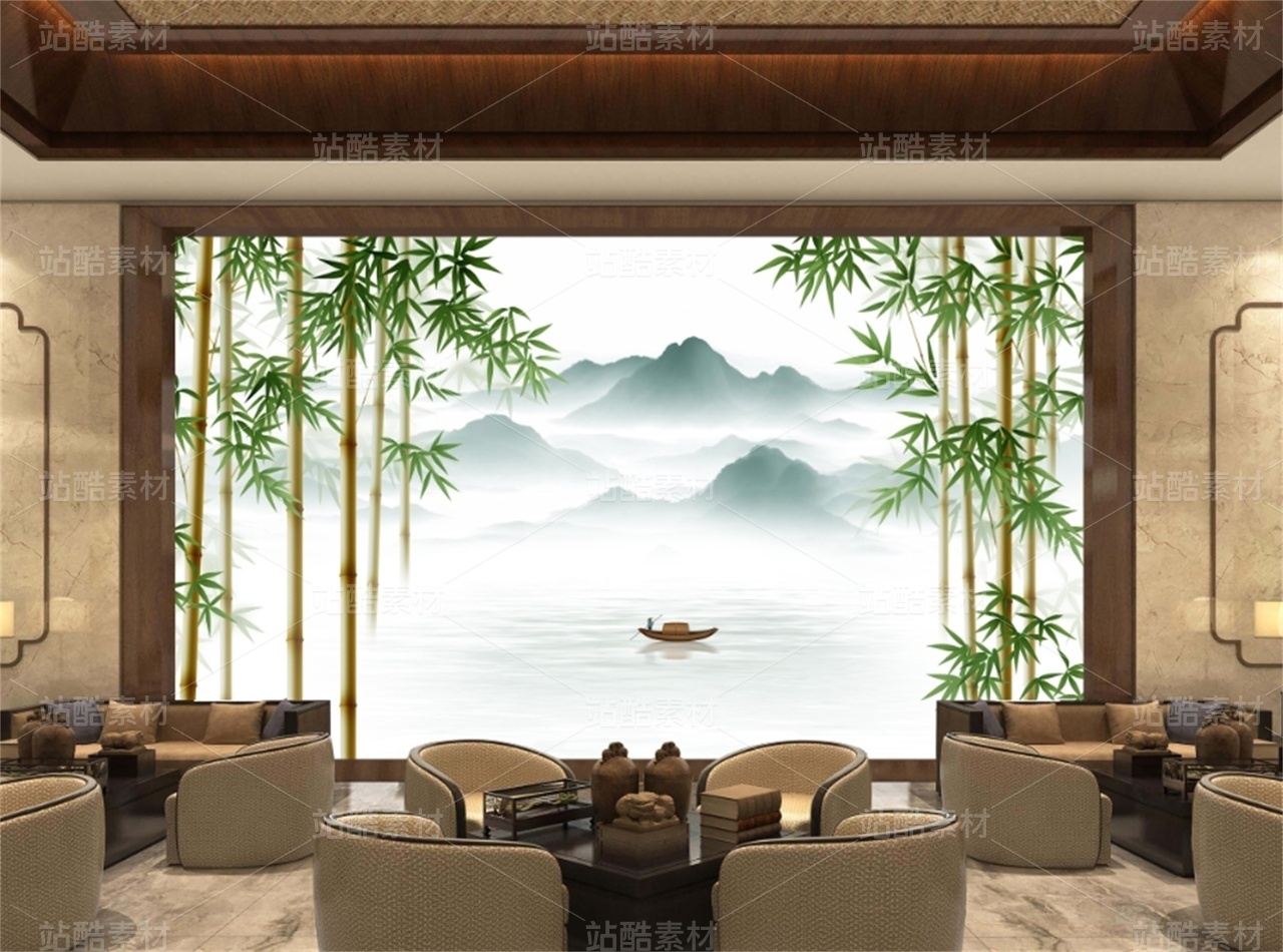 抽象竹鸟装饰画 新中式竹子画 朦胧竹子 适用于家装,酒店,文化场所等,用于做:背景墙、隔断、移门,屏风、玄关。高清分层图可以用UV打印。