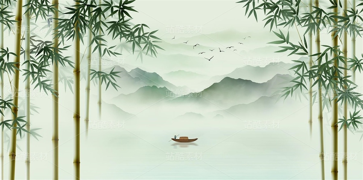 抽象竹鸟装饰画 新中式竹子画 朦胧竹子 适用于家装,酒店,文化场所等,用于做:背景墙、隔断、移门,屏风、玄关。高清分层图可以用UV打印。